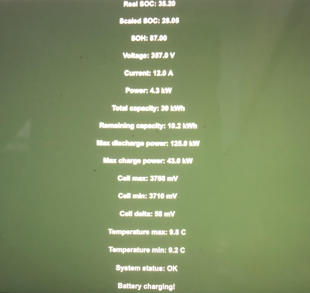 Damals habe ich eine 40Kwh NMC Batterie aus eine verunfallten Nissan Leaf emuliert. Die bereits 6 Jahre alte und 70000km gefahren Batterie wies ein Batteriegesundheit von 87% auf.