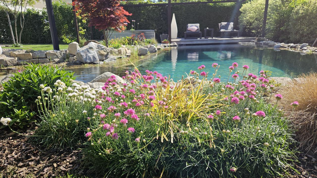 Vielen Dank! In der warmen Jahreszeit bin ich eigentlich jeden Tag / Abend im Garten unterwegs und erledige dies und das, genaue Zeiten kann ich nicht benennen - was jedoch Fakt ist: Ein Naturpool macht (zumindest in einer Form wie unserer und in einem Pflegezustand wie unserer) ungleich mehr Arbeit als ein Chlor- oder Salzpool. Muss man sich schon gut überlegen, ob man die Zeit auch aufbringen will / kann. |