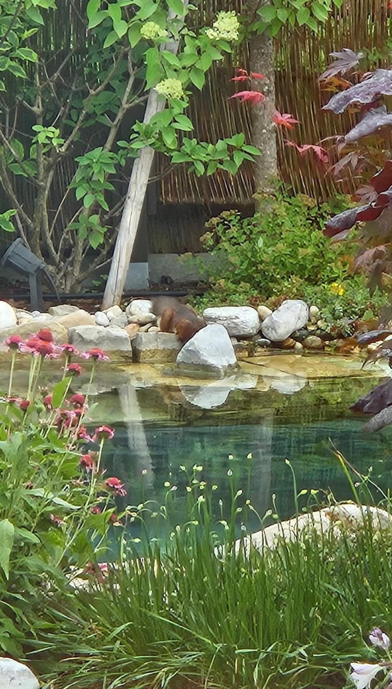 Sehr gerne. 🤘 Ein Naturpool ist aber auch ungleich schöner als ein konventioneller Pool, Sommer wie Winter und er bedient die Natur - wir haben so viele schöne Libellen und Schmetterlinge im Garten seit wir den Pool haben, die Vögel kommen zum Baden und Trinken, der Hund und die Nachbarskatze haben immer Wasser zur Verfügung. Der Quellstein plätschert beruhigend vor sich hin. Und auch nach all den Jahren haben ich mich daran noch nicht satt gesehen und es zaubert mir immer ein Lächeln in´s Gesicht, wenn ein Amselchen im Seichtbereich genüsslich badet oder ein Eichhörchen zum Trinken vorbeikommt. 😍 Die Bauweise unseres Pools unterstützt dies natürlich - mit den Seichtbereichen, den Steinen, den Wasserpflanzen - aber gerade diese Bauweise macht halt auch Arbeit. 👻 (Unsere Nachbarn haben einen rechteckigen betonierten Naturpool - Holzdeck rundherum - bei denen baden keine Vögel, da es keine Seichtbereiche gibt,keine Pflanzen, auch Libellen sehe ich keine, ganz zu schweigen von Bienen, Hummeln etc .... und auch im Winter macht der Pool nichts her. Aber sie haben viel weniger Arbeit damit - man muss halt wissen, was man will.) Bei uns ein Naturschauspiel - der Pool ist die Arbeit allemal wert, auch wenn ich ihn - gerade im Herbst - manchmal verfluche - aber eigentlich verfluche ich eher die 15m hohen Nachbarsbäume, ohne die wäre auch unser Pool besser dran. Und ich auch. 🤐 Wer findet das Eichhörnchen?