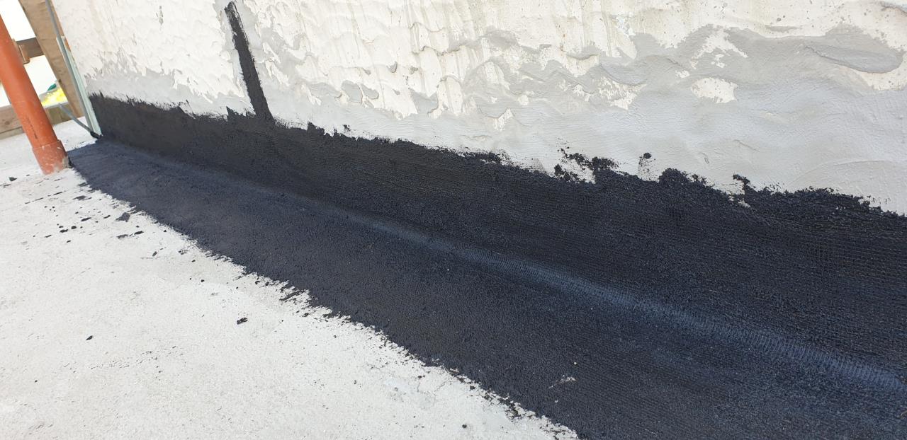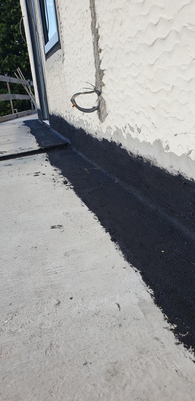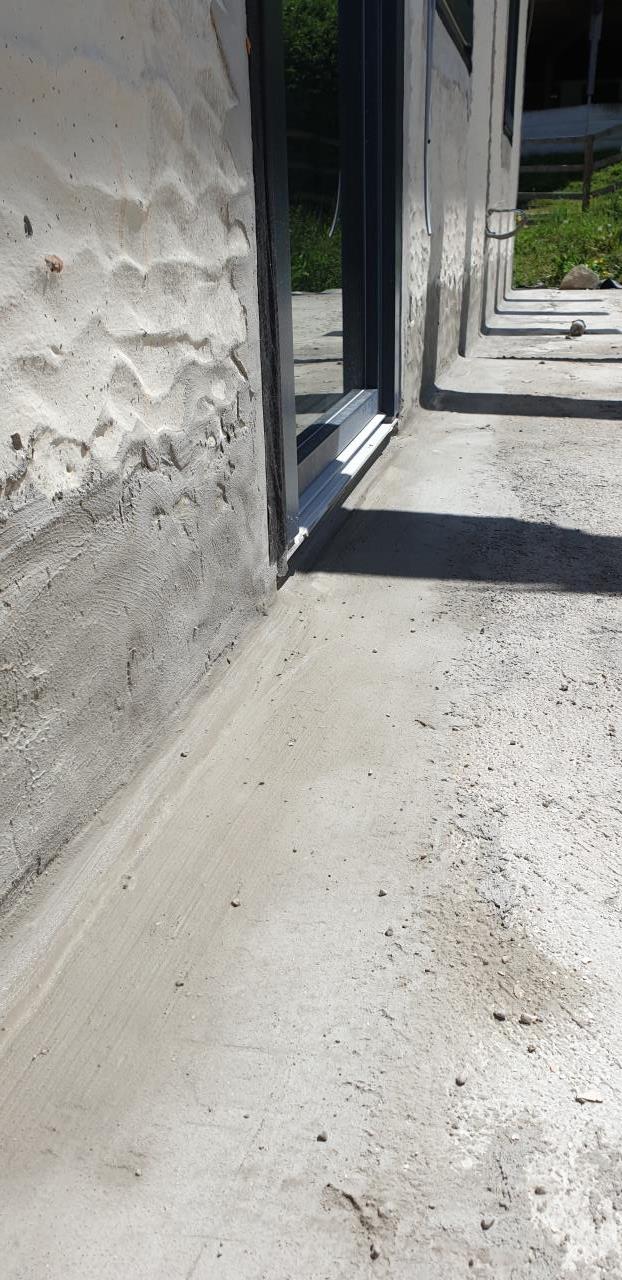 Im Eg ist an zwei Seiten des Hauses eine Betonterrasse. Hier habe ich beim übergang zuvor einen Glattstrich gemacht und eine Hohlkehle dann mit pci pecimor 2k zwei Anstriche mit Netz dazwischen. Es folgt noch ein dritter Anstritt da man das Netz noch sieht.