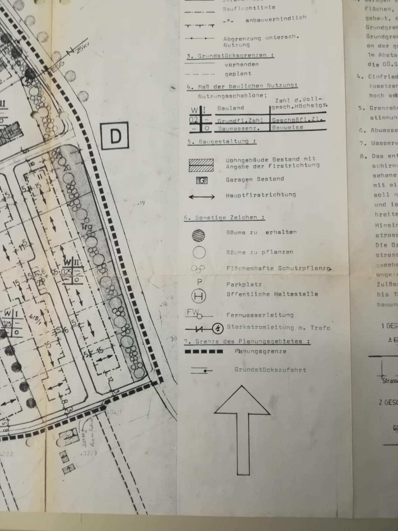 Wie weit muss lt. beigefügtem Bebauungsplan die Überdachung der Terasse von der Grundgrenze entfernt sein? Falls es darin nicht erwähnt ist, was sagt die Bauordnung (Bundesland OÖ).