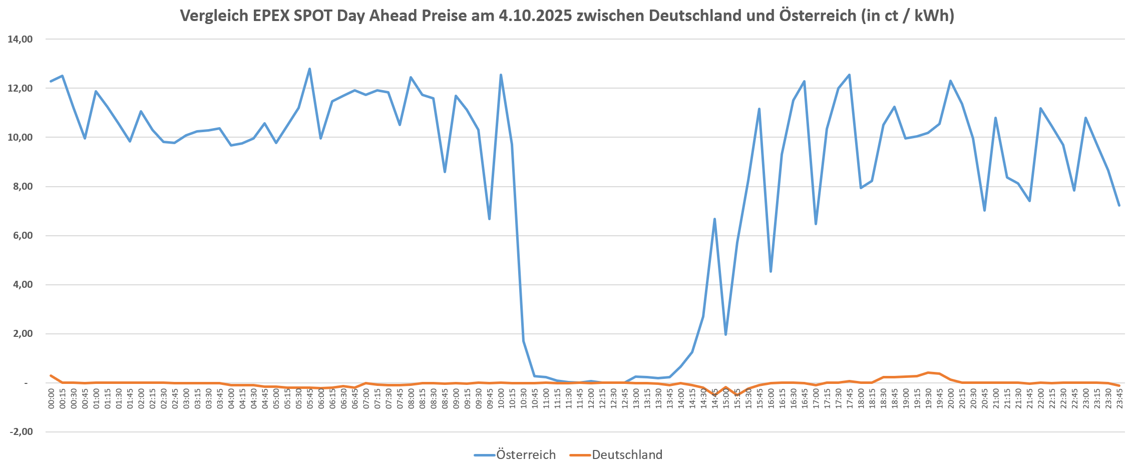 Ich habe ja öfters Grafiken gezeigt, die den "Gleichlauf" der Day AHead Preise zwischen Österreich und Deutschland zeigen.