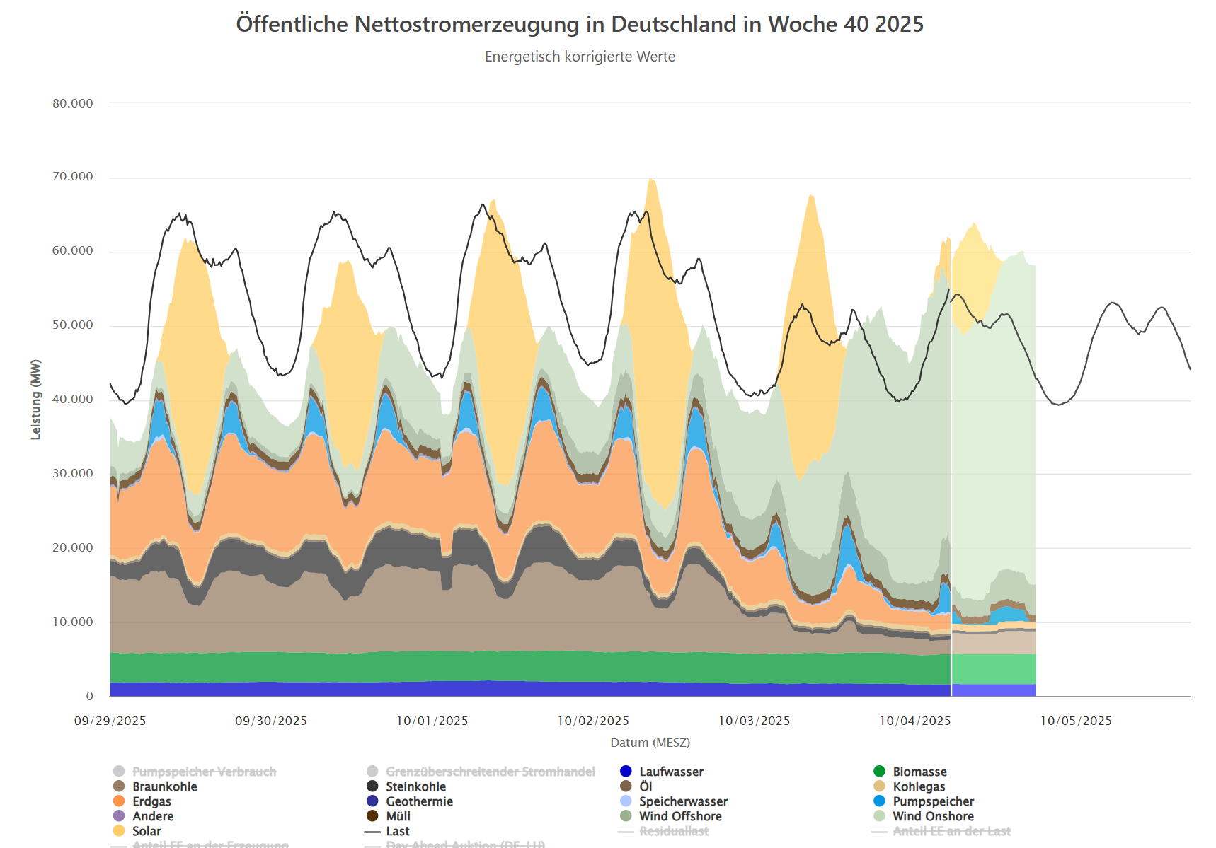 Man sieht recht schön, wie sich die Stromerzeuger in D auf diesen Sturm vorbereiten konnten und die Leistung ihrer anderen Kraftwerke rungefahren haben.