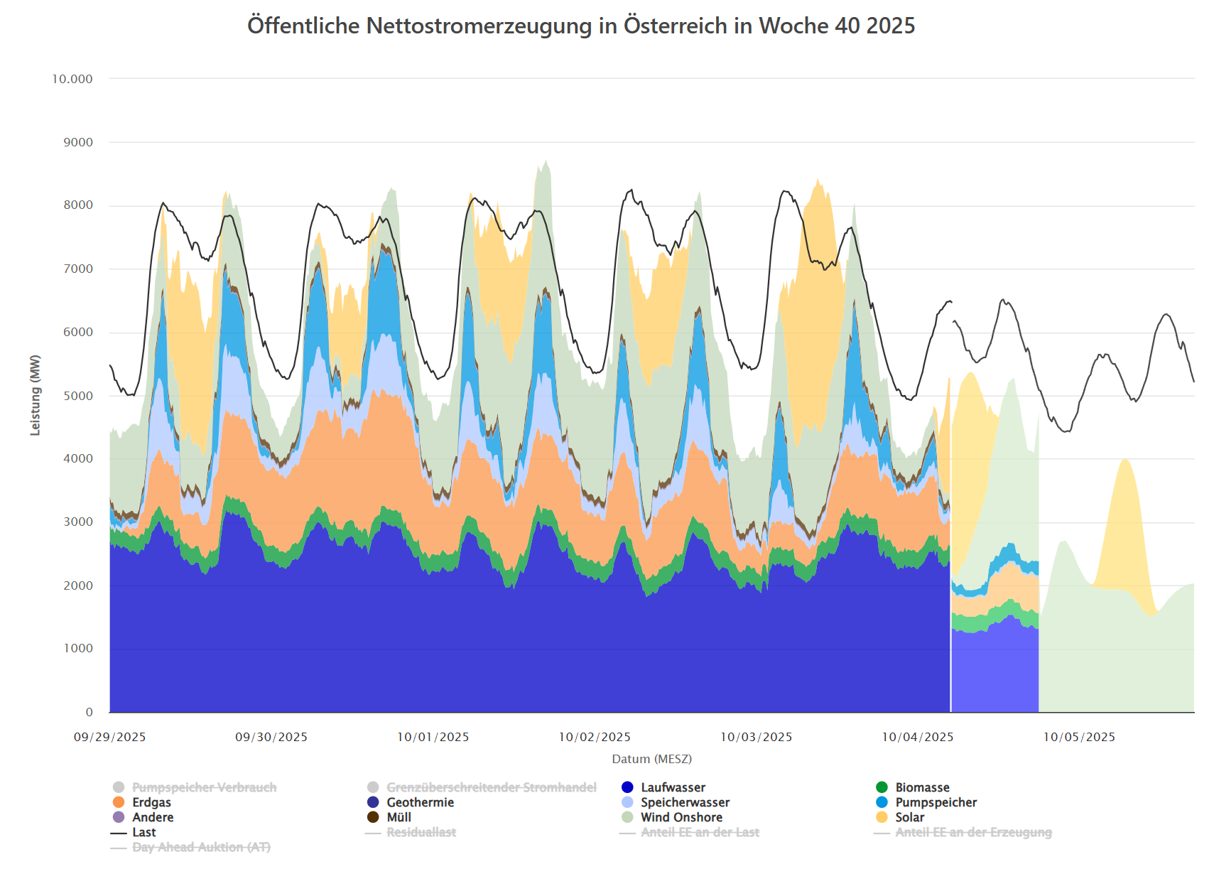Auch in Österreich haben die Laufwasserkraftwerke lt. Energy Charts ihre Leistung reduziert und der Importanteil ist größer geworden