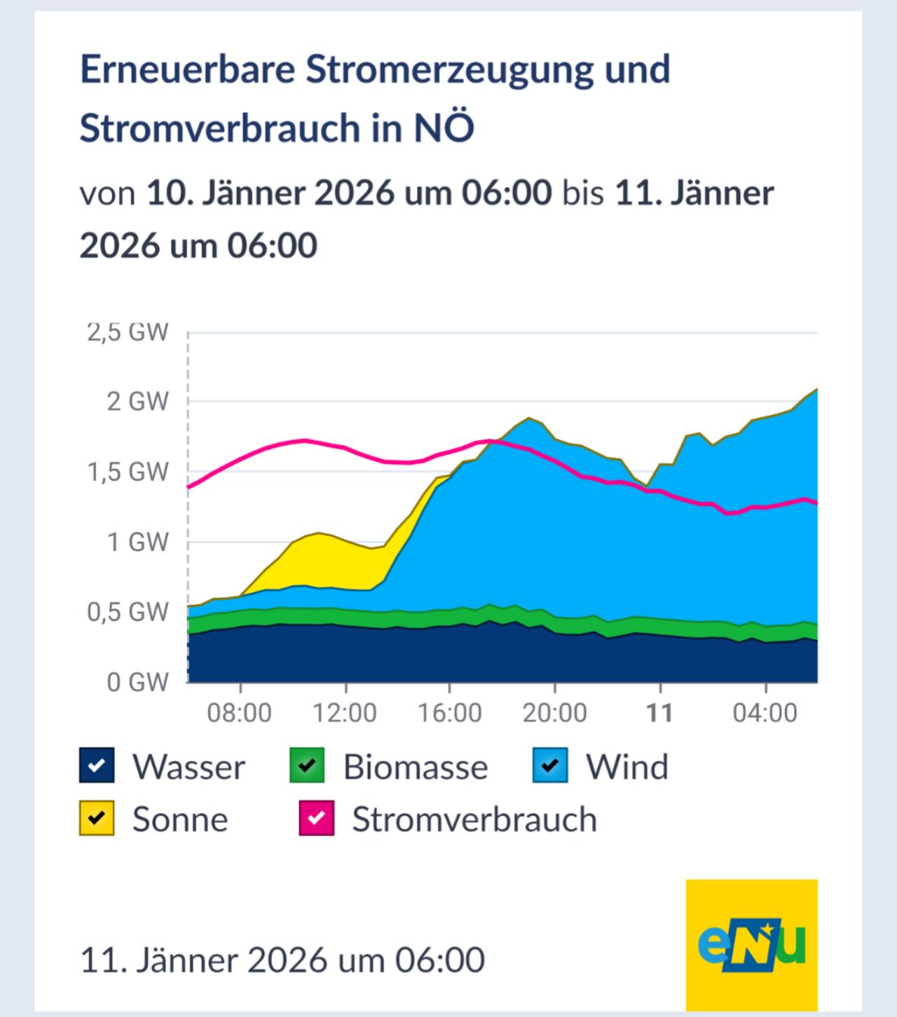 Wieder W mit Wh verwechselt? Oder meinen die die Leistung, was ja eher passen würde? https://www.energie-noe.at/stromerzeugung-live Aber was ist dann das Problem, wenn ich Leistung habe, die ich nicht abrufen muss? Btw. wie bekommen wir die Nichtwind-Bundesländer dazu, dass sie sich obiges Chart mal anschaun? |
