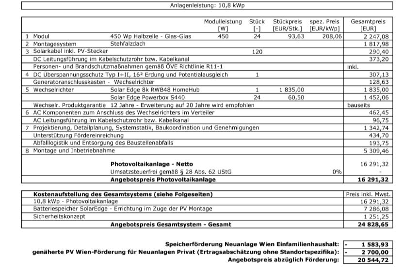 Ich hab heute ein Anbot für eine 28 kwp kwp [kWpeak, Spitzenleistung] Solax Anlage bekommen