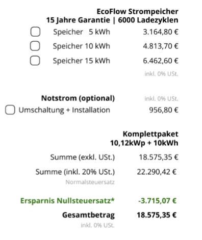 Und nun? Ist das im Sinne des kompletten Angebots als Rundum Sorglospaket noch akzetabel oder überteuert? Wie gesagt, ich habe keinerlei Gefühl aktuell. Im Sinne der eher kleinen Anlage neige ich zur kleinen Batterie.