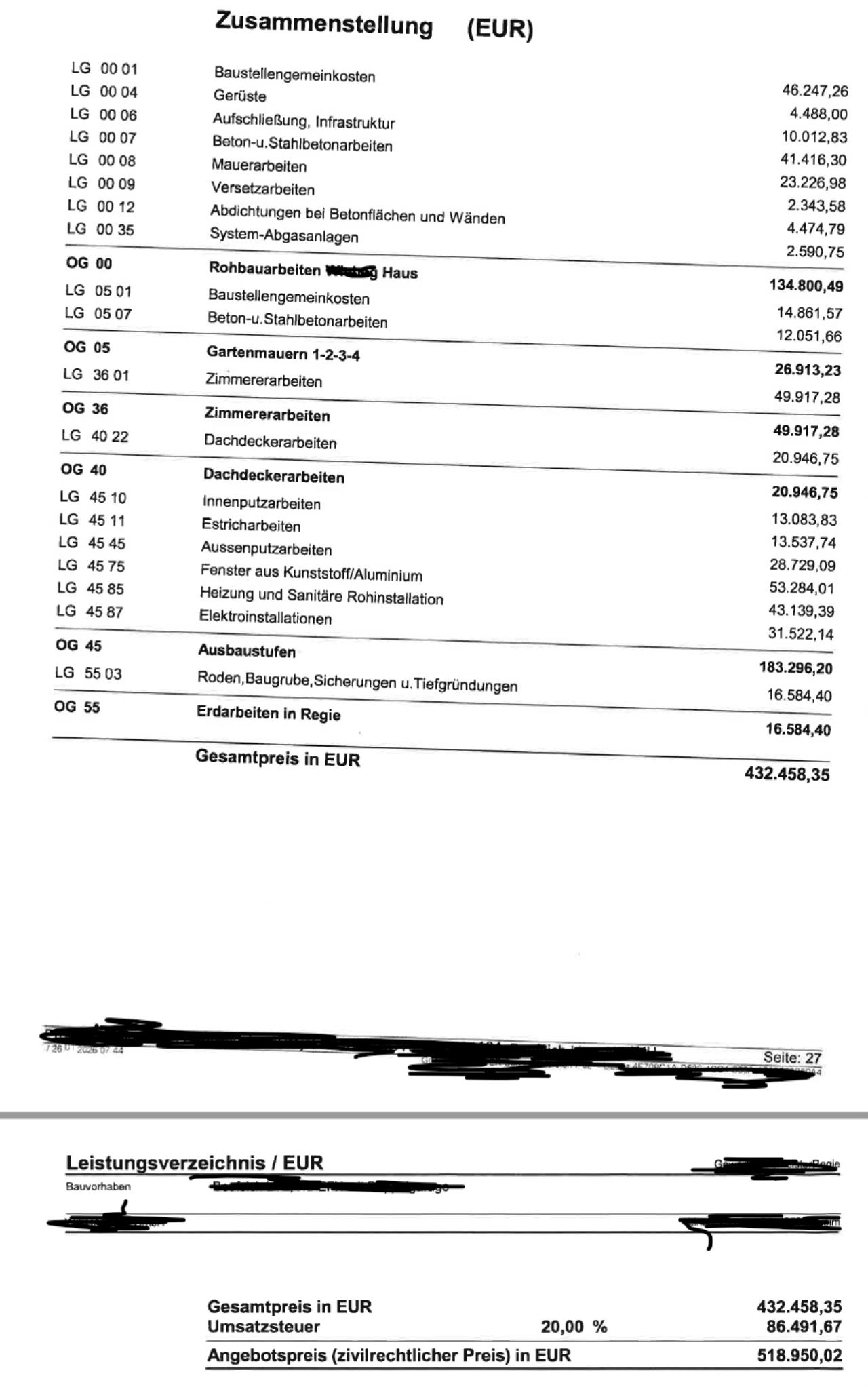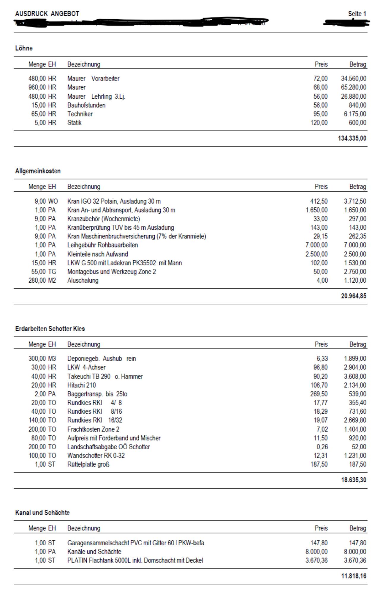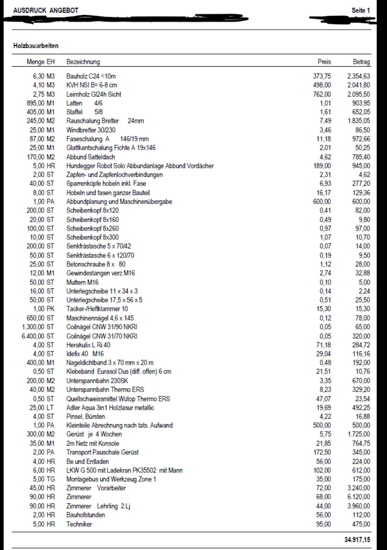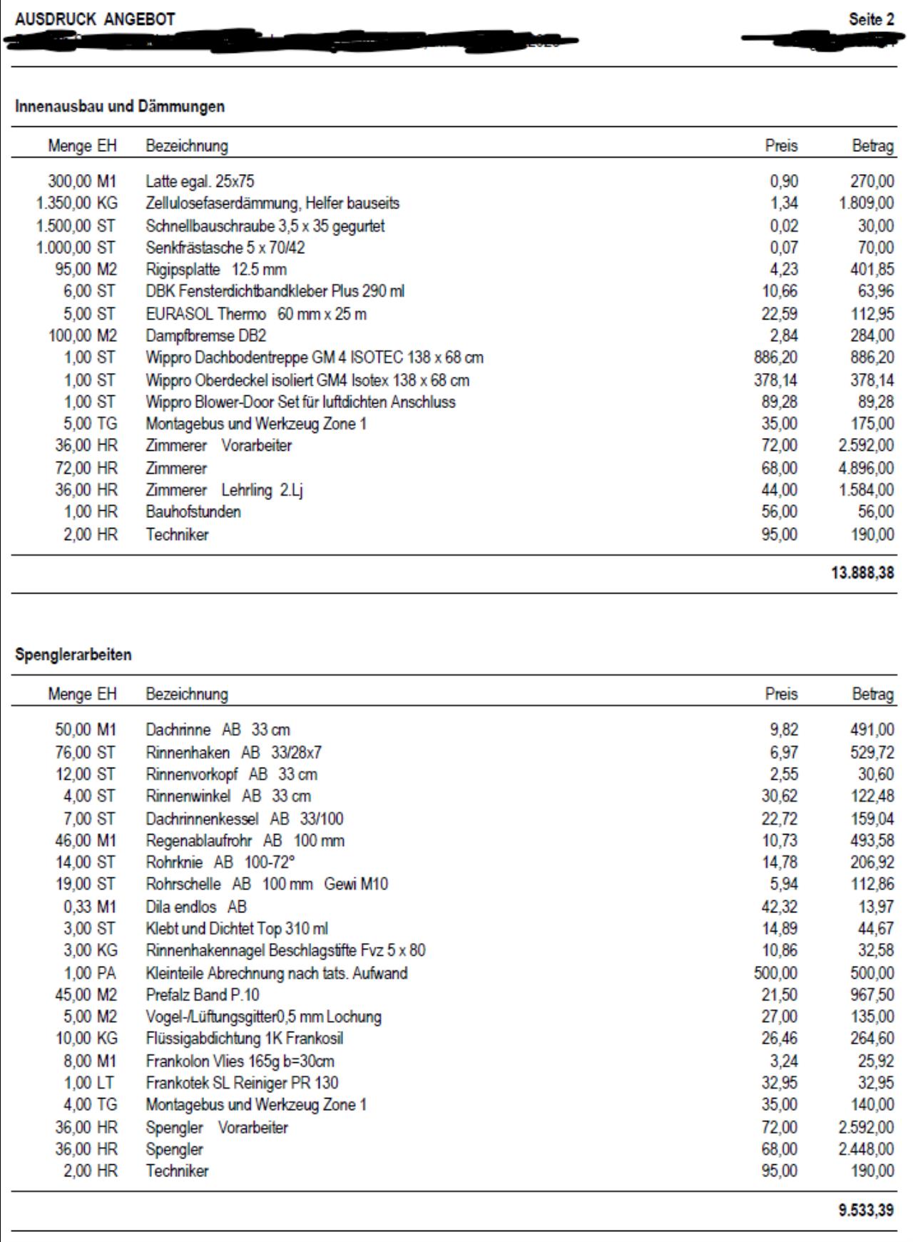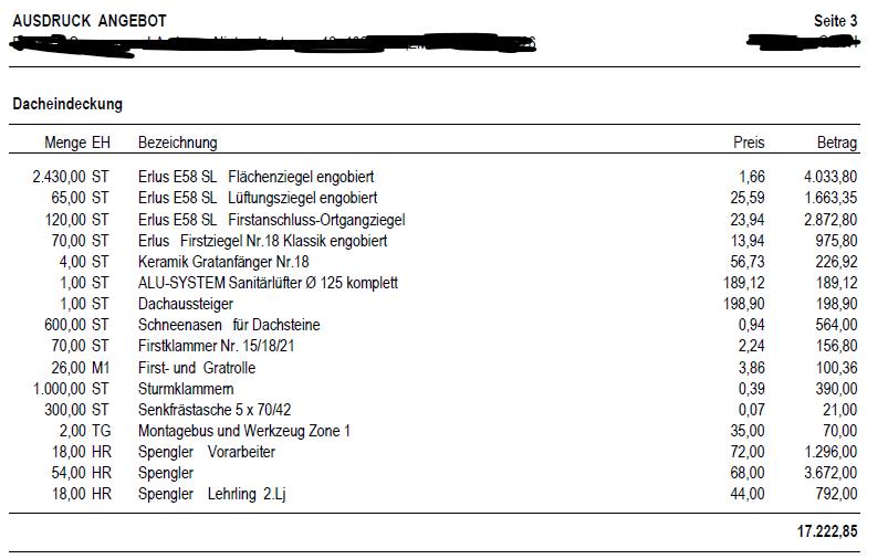 Angebote Rohbau/Dach fair? (OÖ)