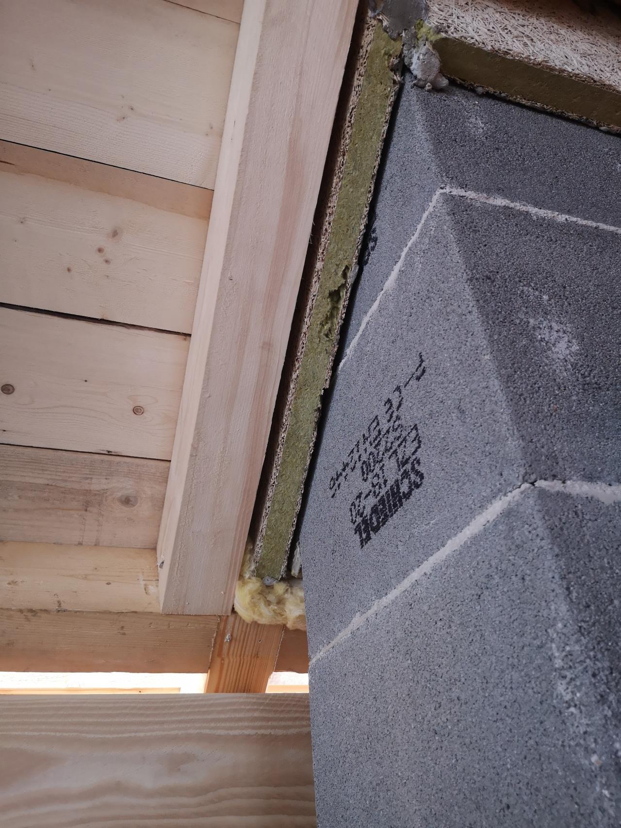 Ist die Ausführung der Kamindämmung nach oben korrekt? Habe hier so meine Zweifel (siehe Foto 2, Steinwolle + verpresstes Holz)