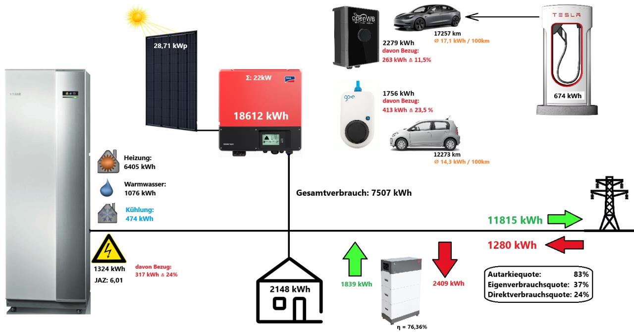 WW: 83 kWh(el) mit 100% PV-Überschuss-Heizstab