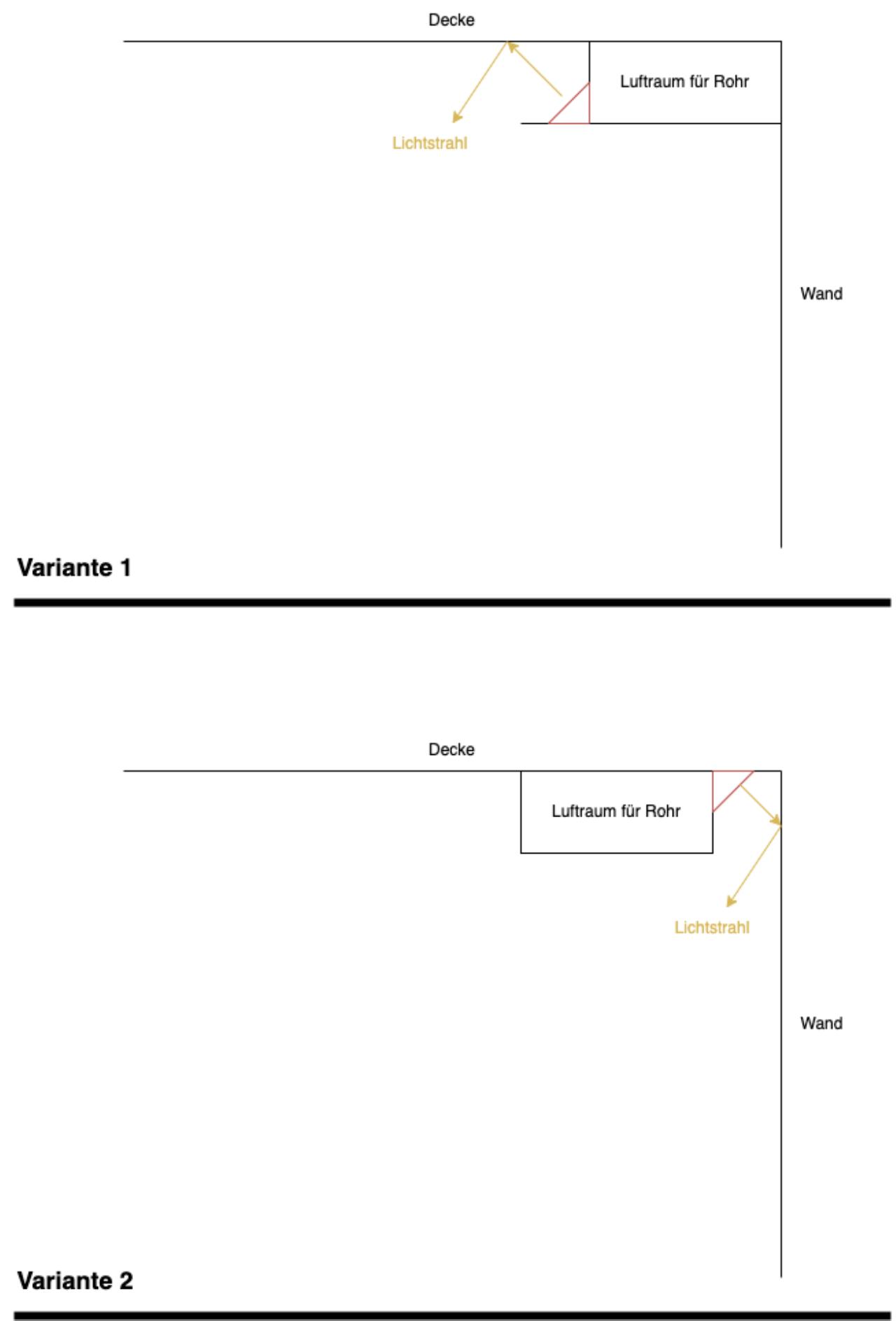 Bei Varinte 1 hast meiner Meinung den Nachteil, dass dir der Staub liegen bleibt  beim Lichtband.