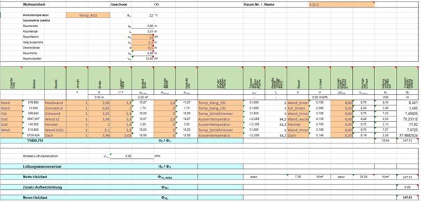 2) Berechnung Heizlast: