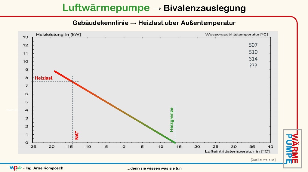 daher funktioniert das NUR mit leistungskurven, in die dann die gebäudekennlinie eingezeichet wird. dann sieht man bivalenzpunkt und modulationspunkt...
