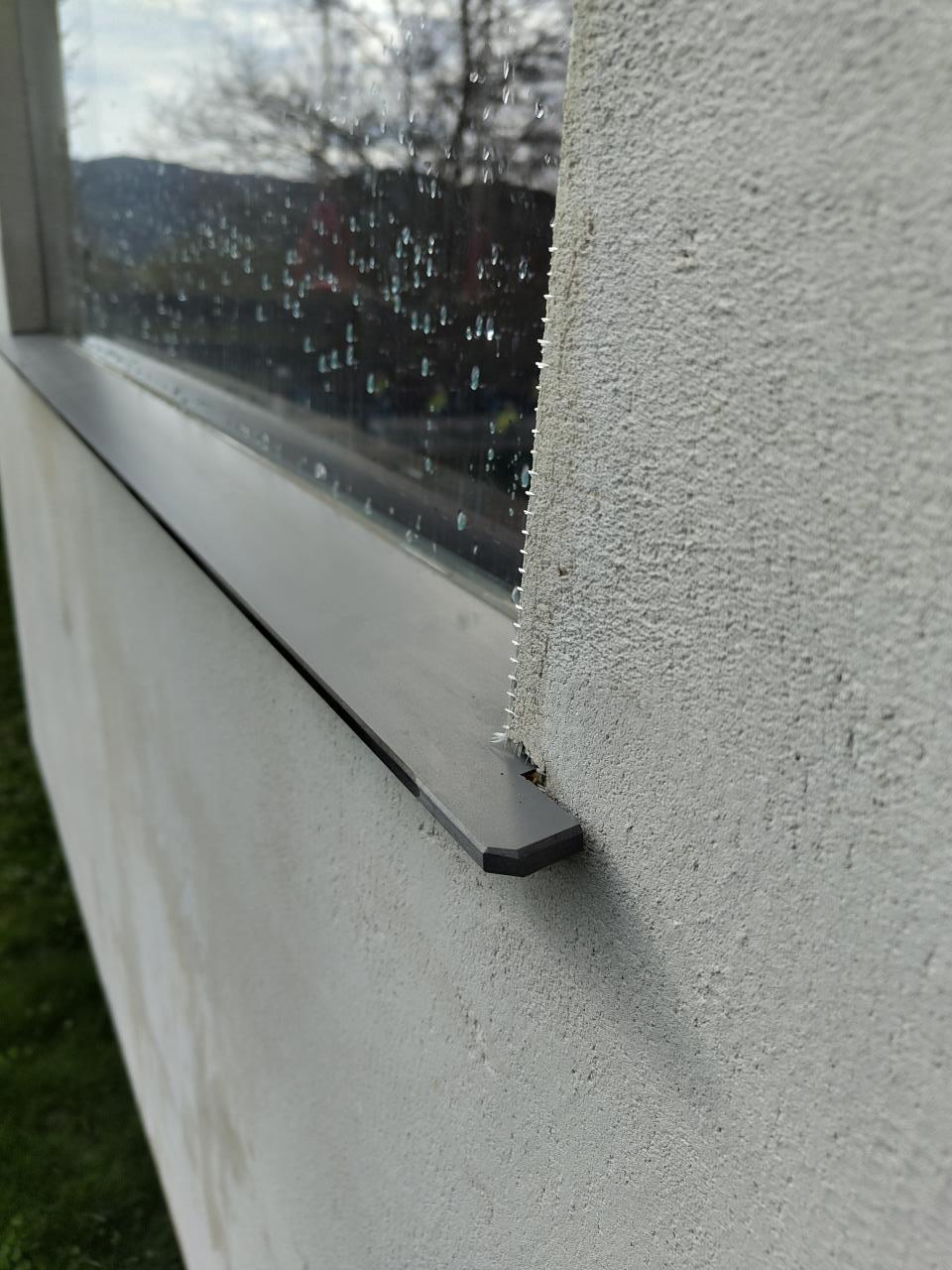 Fensterbank raus. Fassade Nacharbeiten (Gefälle herstellen) bzw. Gewerkeloch schließen und abdichten. Dann die FB einbinden aber richtig. Stein FB dann mit Kompribändern bzw. nach Stand der Technik (siehe Richtlinien) einbinden. 2. Dichtebene muss aber eben schon vorher gegeben sein. Alles andere ist Pf.. und wird dir früher oder später immer zur Wartungsfuge bzw. zum Problem. Geht ja jetzt unverputzt noch relativ problemlos.