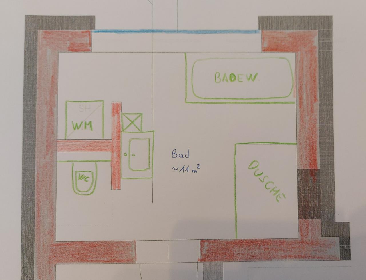 Die T-Lösung ist nicht bestand und davon kann man abweichen. Dadurch hab ichs auch nicht bemaßt. Sorry. Nach vielen überlegen hab ich aber in dem vorgegebenen Viereck (3x3.8m) nichts anderes zusammengebracht. Anforderung sind: -) Badewanne mind 1.80 lang -) Walk in Dusche mit bevorzugt einer Tasse -) Klo -) Waschmaschine + Trockner -) Waschtisch einfach -) als Stauraum zumindest ein Kasten/Schrank für Handtücher Mach der wäscheturm in ca. 60cm Entfernung zur Badewanne Probleme? Daugt mir nicht ganz so. Wobei die Zugänglichkeit schon besser wäre. Ich hab schon zwei Duschtassen versetzt, aber die Anbindung an 3 Ecken und 4 Kanten an die Abdichtung. Da bekomm ich ganslhaut. Über eine gefliest Dusche müsst ich nochmal mit der Hausherrin reden. Danke für dein Input :) |