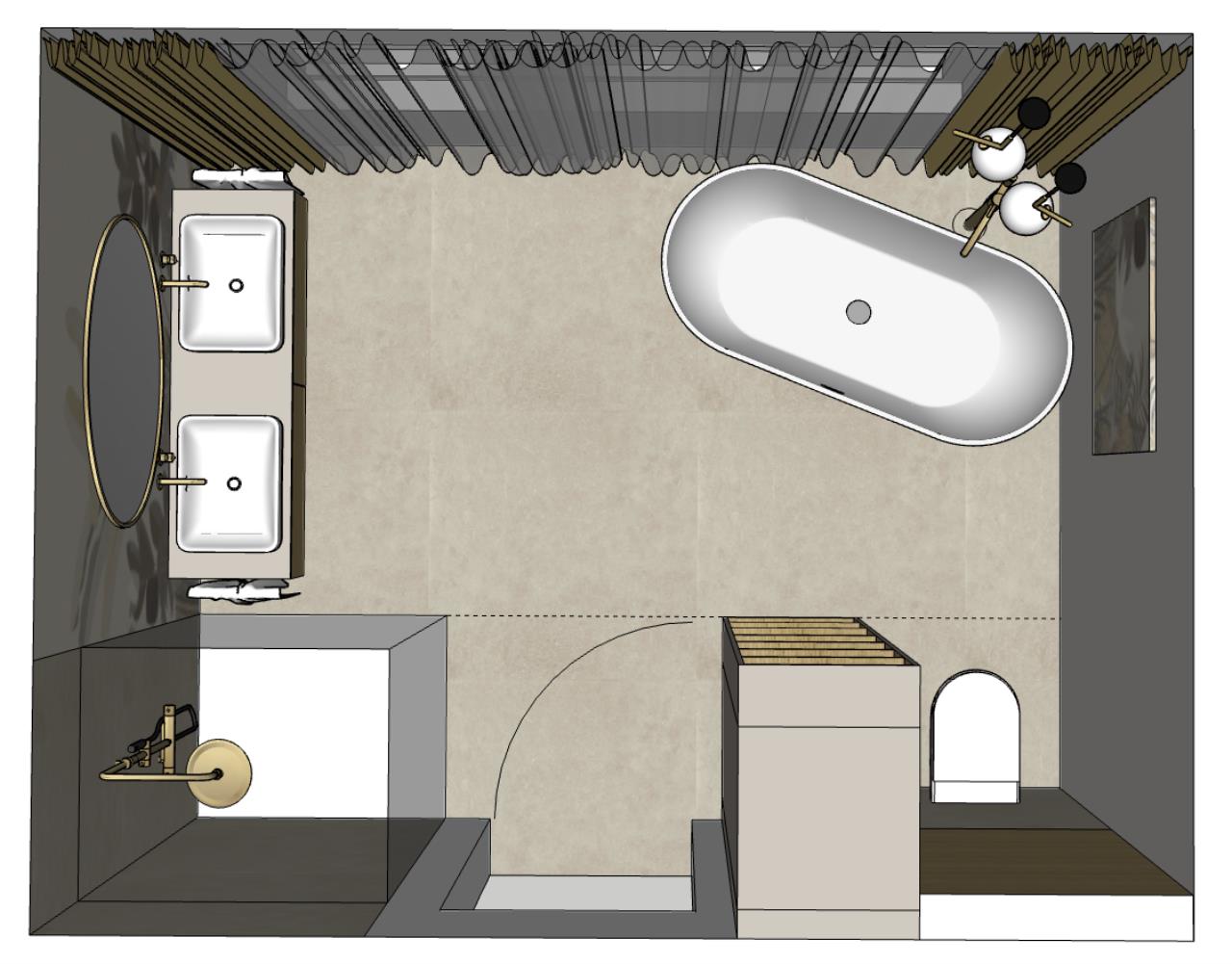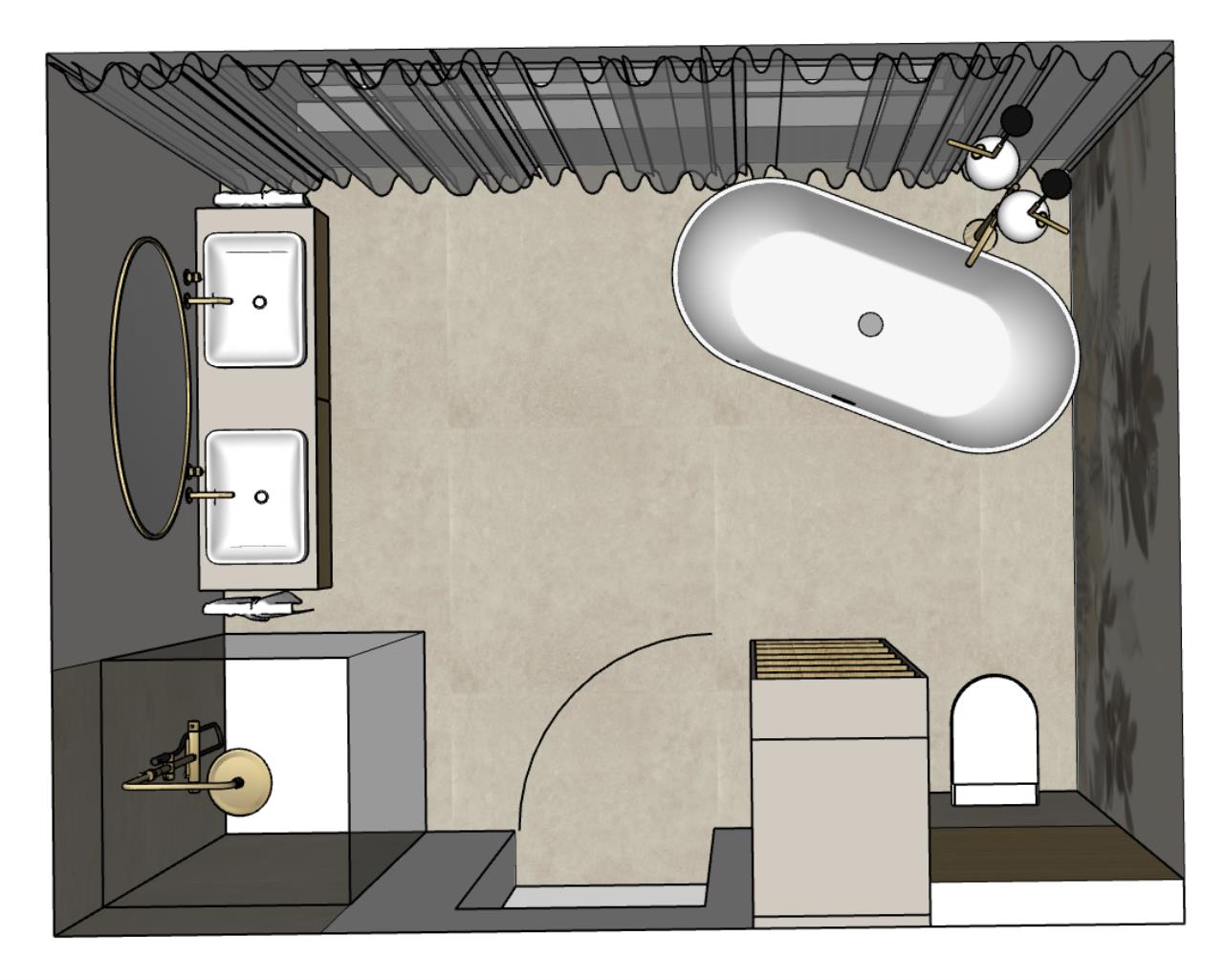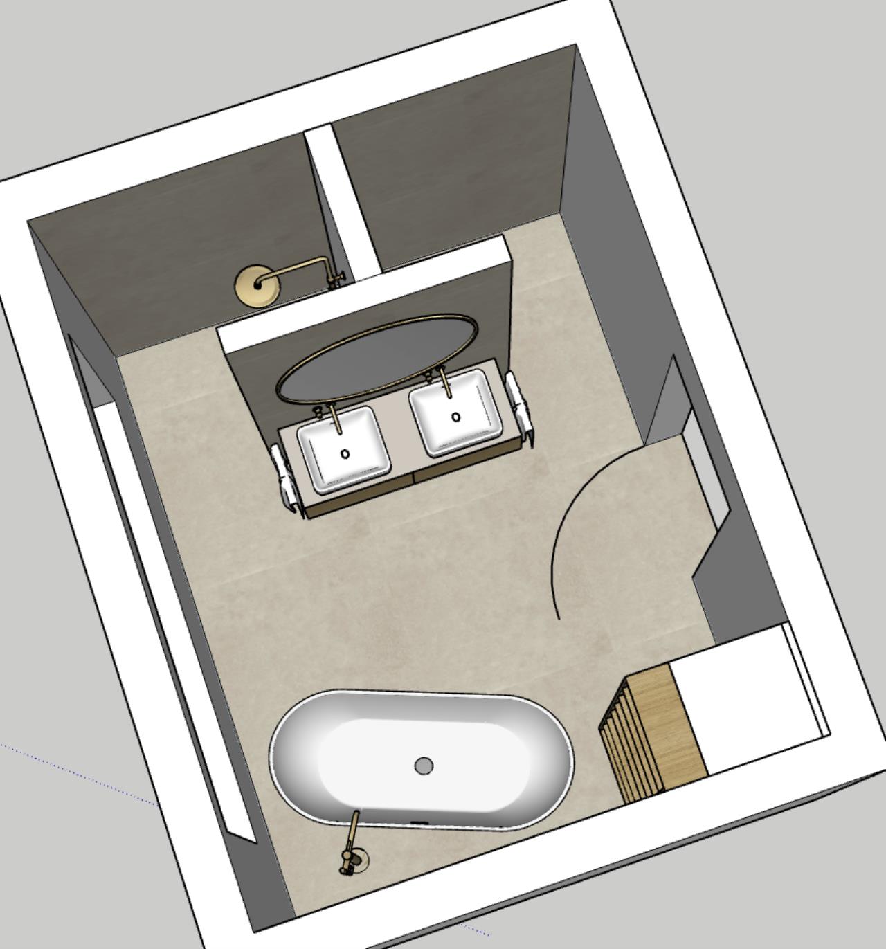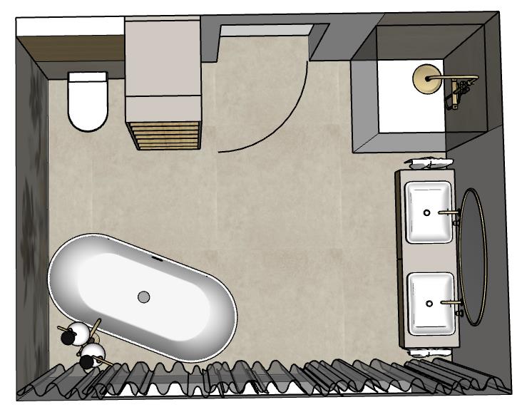 Das T würde ich spiegeln, also auf die rechte Badwand. Wo liegen die Abläufe, in welcher Dimension? Wie ist es machbar? |