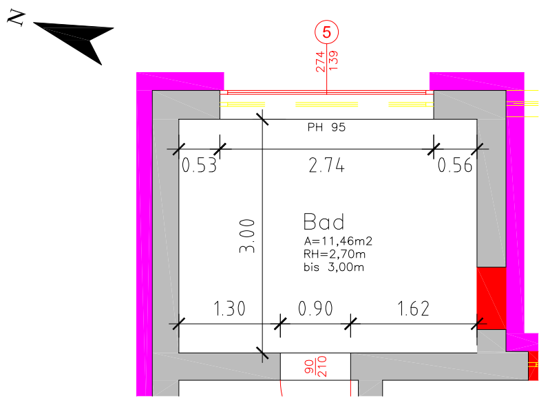 Aktuell gibt es keine Installationen im Raum. Wir sind hier relativ frei, da der Raum nicht unterkellert ist. Der Betonboden wird sowieso für die Dämmung von unten (vmtl. 20cm xps) noch entfernt. Die Abläufe können in der westlichen Wand in den Keller des restlichen Hauses eingeführt werden. Am besten circa unter der Türe. Fußbodenaufbau ist circa wie folgt geplant: 1,5 cm Belag 6,5 cm Estrich 7,0 cm Schüttung und Tackerplatte 0,5 cm Bauwerksabdichtung 10 cm Betonplatte 20 cm XPS |
