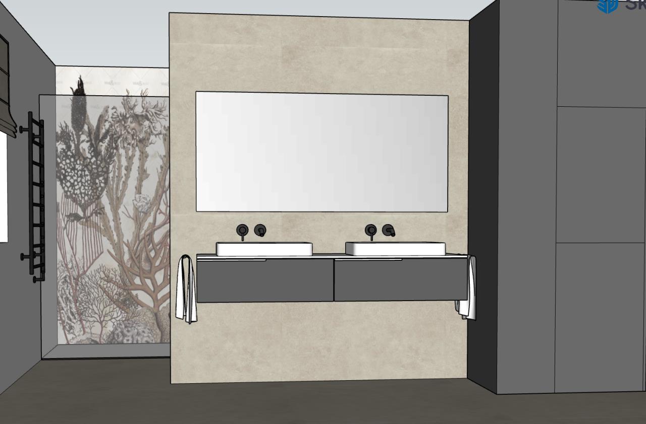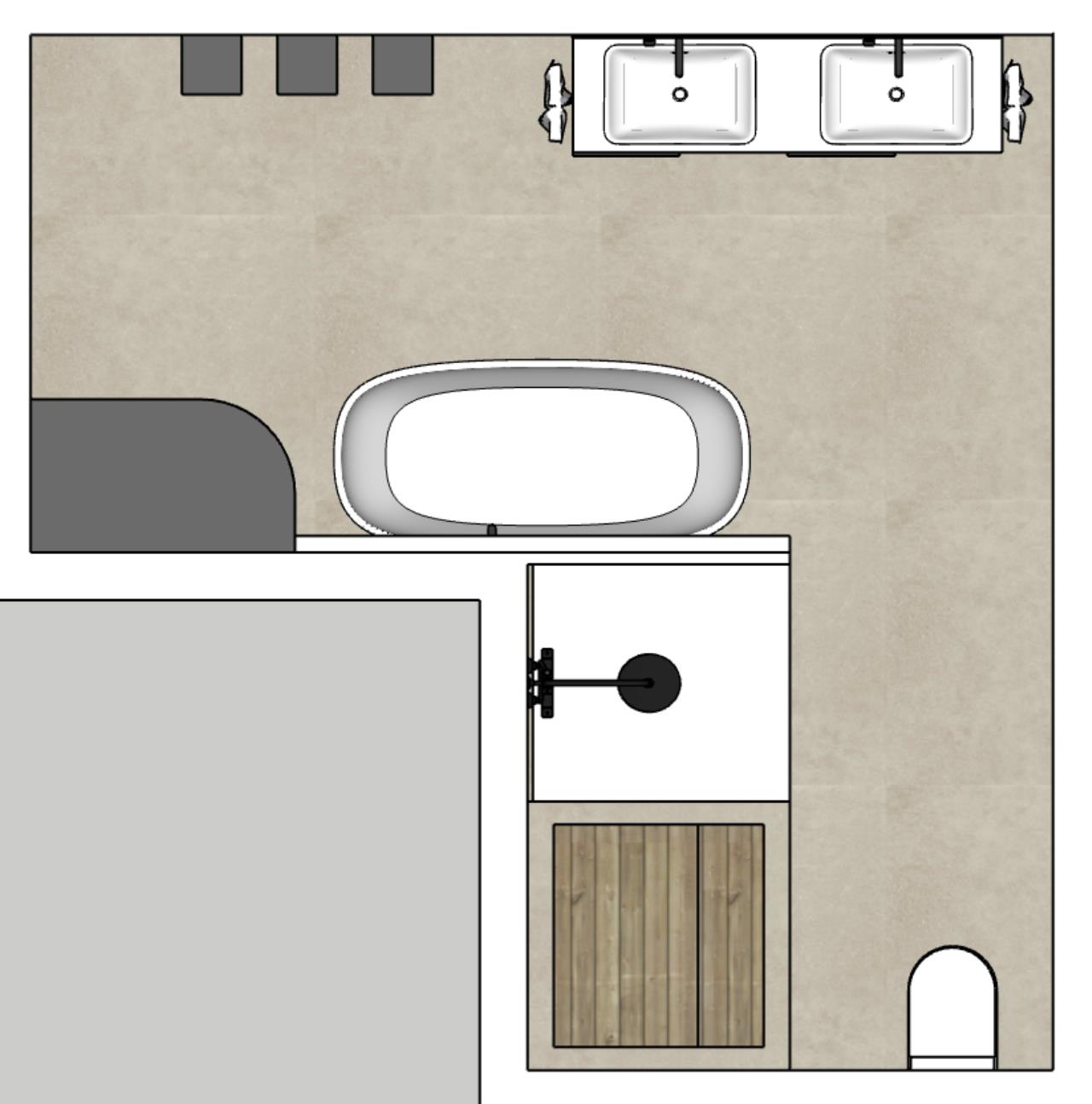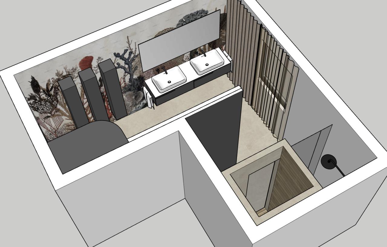 Hab mich ein wenig mit Sketchup gespielt. Ich bin auf folgendes Layout gekommen: Begehbare Dusche ganz hinten, dann WC, kleine Schamwand, dann Waschbecken, neben Waschbecken Hochschrank mit Regal und Waschmaschine/Trockner, gegenüber nette Kasterl und die Badewanne halb freistehend. Mir gefällts. Ist Luxus ;) LG |
