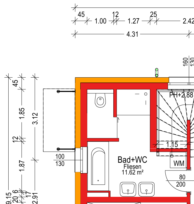 Hallo Leute! Vielen Dank für die tollen Ideen! Mittlerweile ist der ERP soweit fertig und das Bad einmal provisorisch von der Baufirma eingezeichnet. Die Wärmekabine ist gefallen Sollte noch jemand einen konstruktiven Vorschlag haben - sind wir natürlich gerne offen - deshabl poste ich gerne nocheinmal das Bild! Der Schacht ist auf alle 3 Ebenen abgestimmt und nicht mehr "verrückbar"... Vielen Dank für eure Input! LG! |