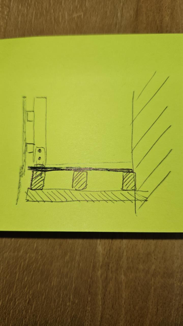 Die metallstützen finde ich nicht wo er hingelegt hat. 🫣 Sind T-Stützen, Grundfläche ca. 10x10 und der Träger nach oben für die Geländersäule ist ca. 20cm hoch. Die sind durch die 27mm Bodenbelag mit 4 Schrauben in den vordersten (neuen) Sparren geschraubt. |