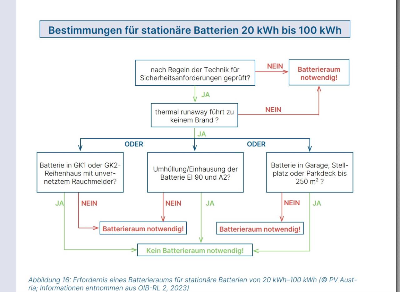 Ich habe am Wochenende mit jemanden gesprochen (Verwandtschaft) der alles mögliche macht in den Bereich (auch Schulungen und so) und er hat bestätigt. Ein Batterieraum braucht nicht bei allen Batterietypen eine Be und Entlüftung und dies kommt vor allem wegen den Leuten die alte Staplerbatterien (Bleiakkus) im Keller als Speicher nutzen, da sich Knallgas bildet und dies weggelüftet gehört. Um es kurz zu sagen LFP nein (auch LTO nein), Beiakku ja. Das ist auch eine gute Nachricht für mich da ich derzeit 75kWh habe und noch Platz für 4x15kWh hätte. Und ich habe gleich einen extra Raum mit Brandschutztüren gemacht, WR und alles andere befindet sich im Nebenraum. Und sollte so als Batterieraum gelten. |