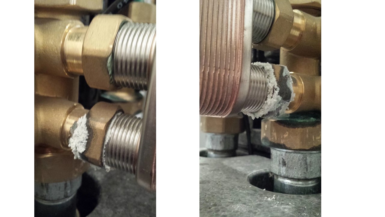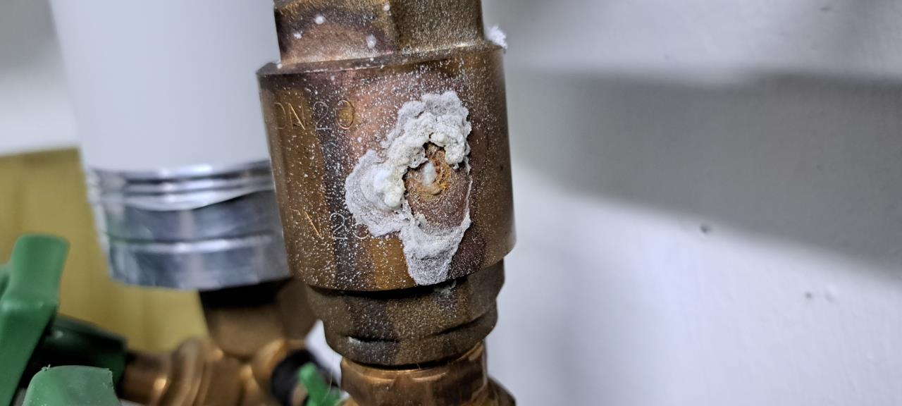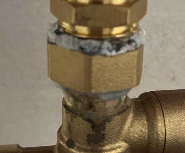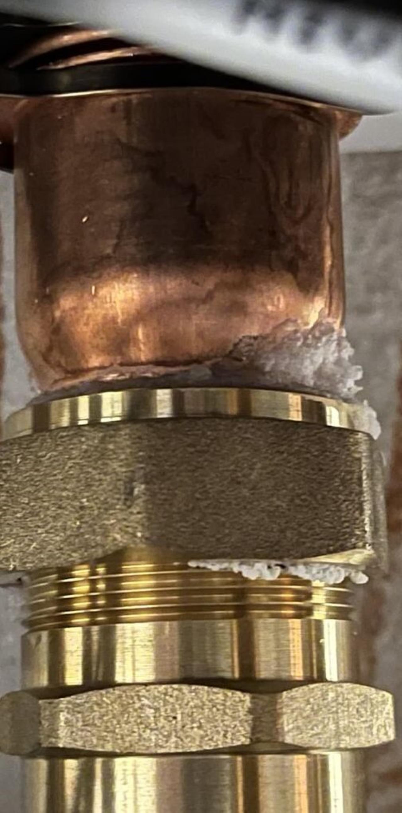 Ok, und das weiße ist Kalk? Sprich wenn der Installateur (sollte ja noch Gewährleistung sein) die Dichtung/Verschraubung korrigiert sollte wieder alles passen? Oder kann das Rohr selber davon Schaden nehmen?
