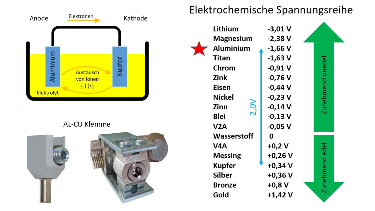 Genau heißt die Bezeichnung Elektrochemische-Spannungsreihe. Anhand dieser bestimmt man die elektrische Spannung zwischen zwei Metallen, wenn diese über einem Elektrolyten verbunden sind. Bei der Heizungsinstallation ist das nicht von großer Bedeutung.  Bei Trinkwasserinstallation hat (hatte) dies ein große Bedeutung.  Nach einem Kupferrohr durfte kein verzinktes Material mehr verwendet werden. Im Freileitungsbau müssen Kupferleitungen und Aluminiumleitungen mit sogenannten CU-AL Klemmen verbunden werden.