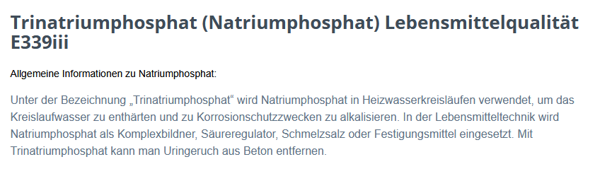 Und das "Teufelszeug" wird bei den verarbeiteten Lebensmittel als Zusatzstoff E339 zugeführt.