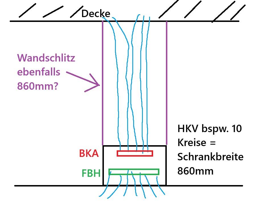 Die BKA BKA [Betonkernaktivierung] für EG z.b würde ich ins OG setzen. Kommt auf die Verteilergrößen an, Schränke gehen je nach Hersteller 120- 150cm |
