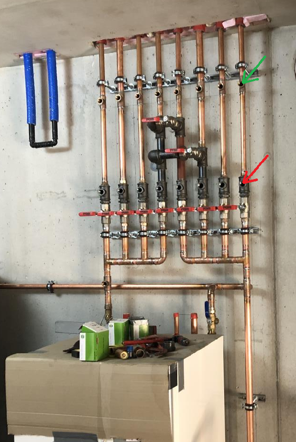 Werde die Umschaltung bei der Verrohrung jetzt gleich mal mit einplanen. Was sollte man neben den Absperrungen gleich noch mit vorsehen? Wie im Bild zu sehen grüner Pfeil / roter Pfeil? |