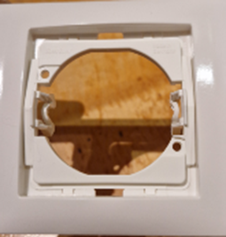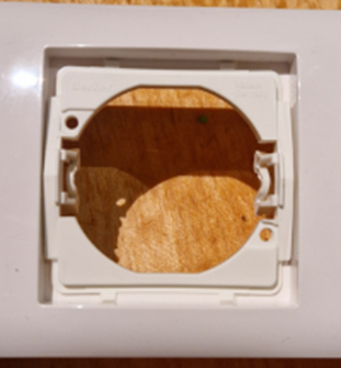 Die Berker S.1 Einsätze passen hier nicht so gut. Der Unterputzeinsatz ist flach so wie beim Busch und Jäger und die Zentrierung erfolgt über die Schalterabdeckung. Diese hat 2 kleine Nasen oben und unten, welche den Busch und Jäger Rahmen zentrieren. Da hier im Rahmen keine Ausnehmungen wie beim originalen S.1 Rahmen sind bleibt hier eine Distanz zwischen dem Blech des UP-Einsatzes und der Schalterabdeckung. Die beiden Haken links und rechts schnappen nicht komplett in den UP-Einsatz. Es hält aber trotzdem. Die Schalterabdeckung passt mit der Rundung sehr gut zum Rahmen. Das Tastergeräusch ist lauter und „grober“ als beim Gira auch der Druckpunkt ist etwas fester.