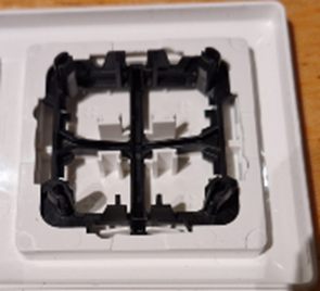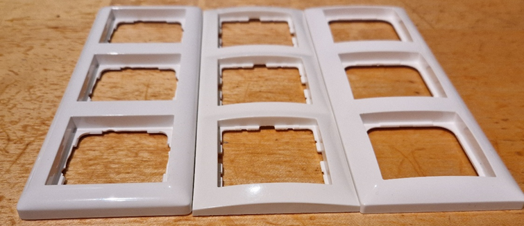 Man könnte am Busch und Jäger Rahmen diese Ausnehmungen nachfräsen, damit rutscht die Schalterabdeckung aber weiter in den Rahmen der ja dicker ist als der Originalrahmen. Beim Tasten steht dann der Rahmen vor.