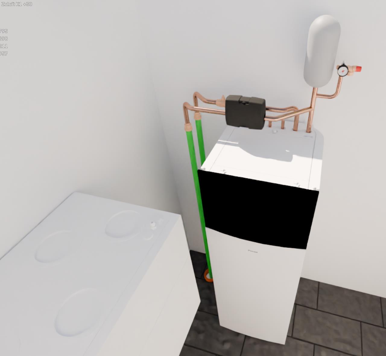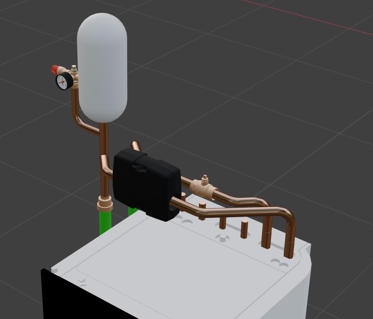 Danke, danke 😄 Dabei war das noch gar nicht der fotorealistische Renderer. Nein, die Bilder kommen aus meinem Plan, den ich gerade schon wieder umgeschmissen habe, nachdem ich den restlichen Raum eingeblendet habe. Die Raumecke ist leider nicht gut geplant, das hätte ich echt früher angehen sollen. Aber jetzt sind die Leitungen wo sie sind, nichts mehr zu machen. Genau in der Ecke geht auch noch ein Abwasserrohr rauf und das Duschrohr wird auch dort seinen Platz finden. Dann kann ich nur hoffen, dass ich nicht allzu oft da nach hinten muss. Im Prinzip hab ich einfach die Teile gespiegelt. Die Solevase macht rechts einfach mehr Sinn, da kommt man dann halbwegs dazu. Rein intuitiv könnte das auch technisch Sinn machen, weil größere Luftblasen über die horizontale Strecke genug Zeit haben, sich oben im Rohr zu sammeln und dadurch von der Sole nicht in die falsche Richtung mitgerissen werden. Reine Mutmaßung natürlich und mangels transparenter Rohre werd ichs wohl auch nicht rausfinden 😉 Verbesserungsvorschläge sind wie immer willkommen!