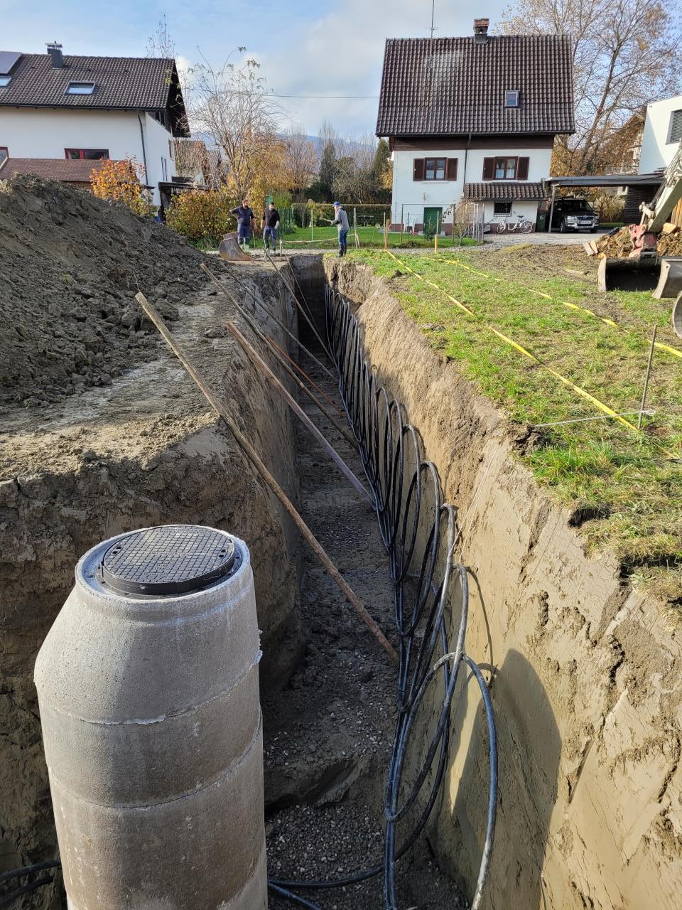 Hoi Ah danke, das ist ma irgendwie entgangen... Sry da muss ich passen, das Thema hatte ich ned. Streber 😂 Es ist beim Vertikalen schon bissl mühsamer, habs aber jetzt ned als allzu schrecklich in Erinnerung. Ma mankelt halt mit der schweren Rolle umadum, bis die Slinkies richtig rum herunten sind und mit den Kabelbindern zusammengeschnöselt sind. Baggern dauert auch länger mitn klan Löffel. Was am blödesten zum Baggern ist, san Winkel oder Kurven, vermeide die, wenns leicht geht! Das ist im Prinzip fast wurscht. Bei mir hammas auf dem graben gemacht aus Platzgründen. Bildquelle: https://www.kraweuschuasta.at/media/images/rgk_ausfuehrung39.jpg Runterlassen war recht einfach, links am Foto an der Seite aufgestellt und reingeschmissen. Das Ganze Abschnittsweise Da sieht mas halbwegs.. Bildquelle: https://www.kraweuschuasta.at/media/images/rgk_ausfuehrung46.jpg Da hamma einen Abschnitt fertiggemacht und reingeschmissen (ja im wahrsten Sinn des Wortes). Wenn ich mich richtig erinner, hamma den vertikal nur an neuralgischen Punkten konfektioniert oder fertigkonfektioniert, wenn der Schlauch allzu widerspenstig war - also bei Verbindungen zwischen 2 Abschnitten, was war aber ka Hexerei. Ich hab jetzt bei 4 RGK RGK [Ringgrabenkollektor] Verlegungen mitgemacht (1,5x vertikal, 2,5x horizontal) war nie ein großes Thema. Und Ja, horizontal geht schneller bzw. einfacher zum Verlegen, beim Schnellsten waren wir in weniger als 1 Stunde fertig - der Baggerfuzzi hat super vorgearbeitet. Bei mir hats paar Stunden gedauert, auch bei @MalcolmX da mussten wir immerwieder auf die Baggerer warten, war auber auch kniffliger zum baggern... LG |