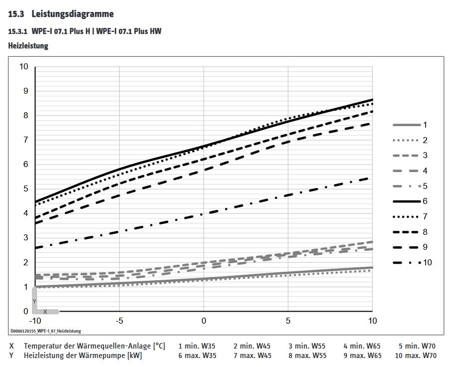Mehr als die Daten im Installer Reference Guide habe ich auch nie gefunden. Praktisch liegt die Mindestleistung bei uns im Betrieb etwas unter 2kW (ca. 1.8kW glaube ich) bei leicht positivem Soleeingang und unter 30° VLT. Genauere Werte gibts irgendwo in der Influx DB, weil alles so läuft wie es soll habe ich die aber noch nie genauer ausgewertet. |
