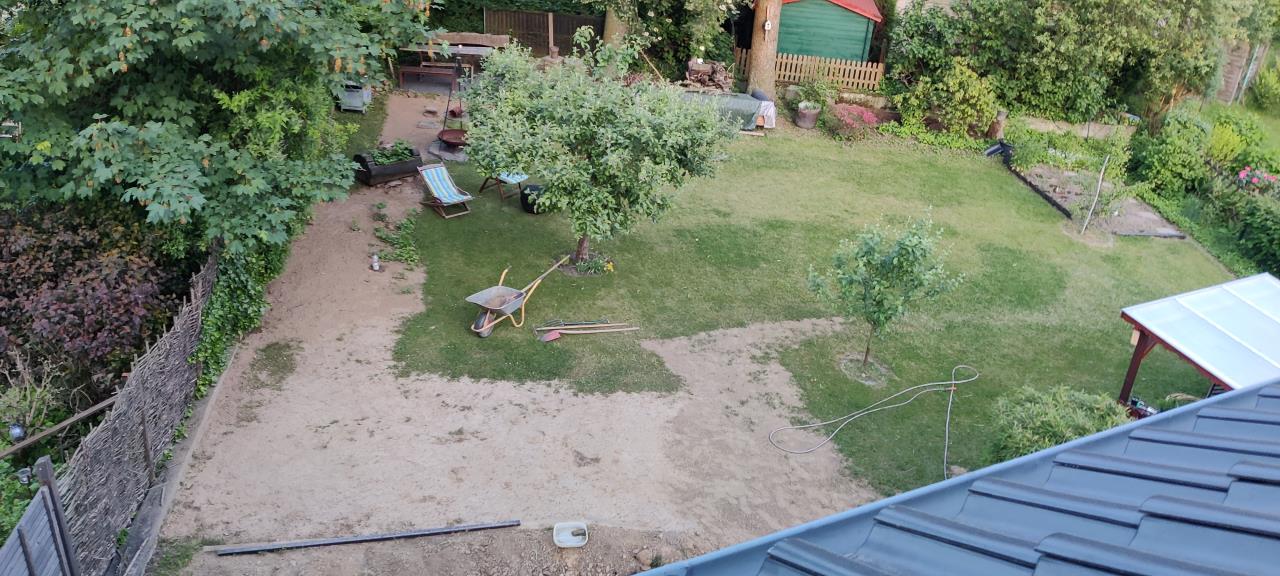 kann ich bestätigen. wenn der boden hier einmal nass ist, läuft jeder weiterer regen einfach wie auf versiegelter fläche ab. oder mehr... am anfang füllt sich der graben durch das lockere material ja noch schneller mit wasser und die ersten setzungen gehen zackig (1-2 jahre). jetzt, nach 8 jahren, sieht man ende winter nur noch ganz wenig an manchen stellen. ich warte aber immer noch auf ein paar meter, wo der regen durch große duglasien den boden nicht so durchnässen konnte. da kommt noch was :( keine ahnung, wie viele schubkarren ich da insgesamt noch verteilt habe. wenn man den bereich zu früh bepflanzt, n weg drüber legt, oder gar ne gartenhütte hinstellt, wird man sich wundern... hab n paar beete drüber angelegt und randnah apfel und birne gepflanzt. mach nicht den fehler wie ich, die kleine birne halb über den graben zu setzen... die stand irgendwann schief und musste nochmal umgesetzt werden. @dyarne da mach ich im frühsommer mal wieder paar bilder zu, wie die kleinen stämmchen sich entwickeln. allerdings ist der RGK RGK [Ringgrabenkollektor] noch nie in die vereisung gegangen. das macht sicher einen unterschied. |