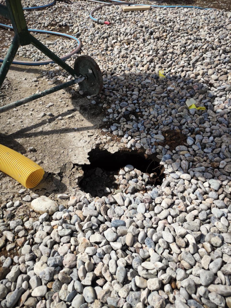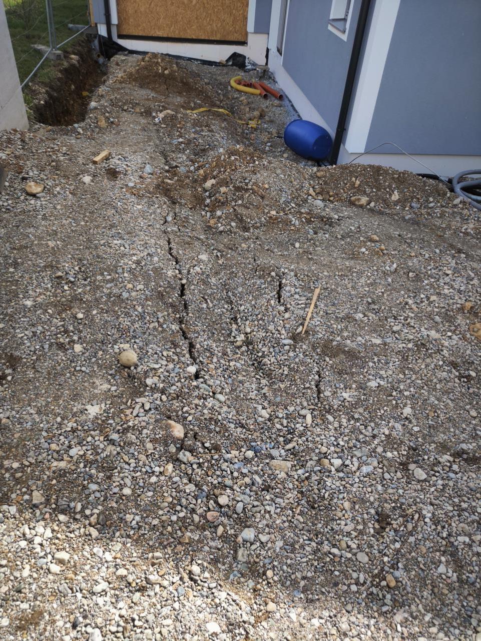 Mögen die Setzungen beginnen... Vielleicht sollte ich den Rollschotter mal woanders lagern. Sonst baut sich der RGK RGK [Ringgrabenkollektor] seinen eigenen Sickerkoffer 😃 Die Einfahrt werden wir dann wohl noch länger nicht pflastern. |