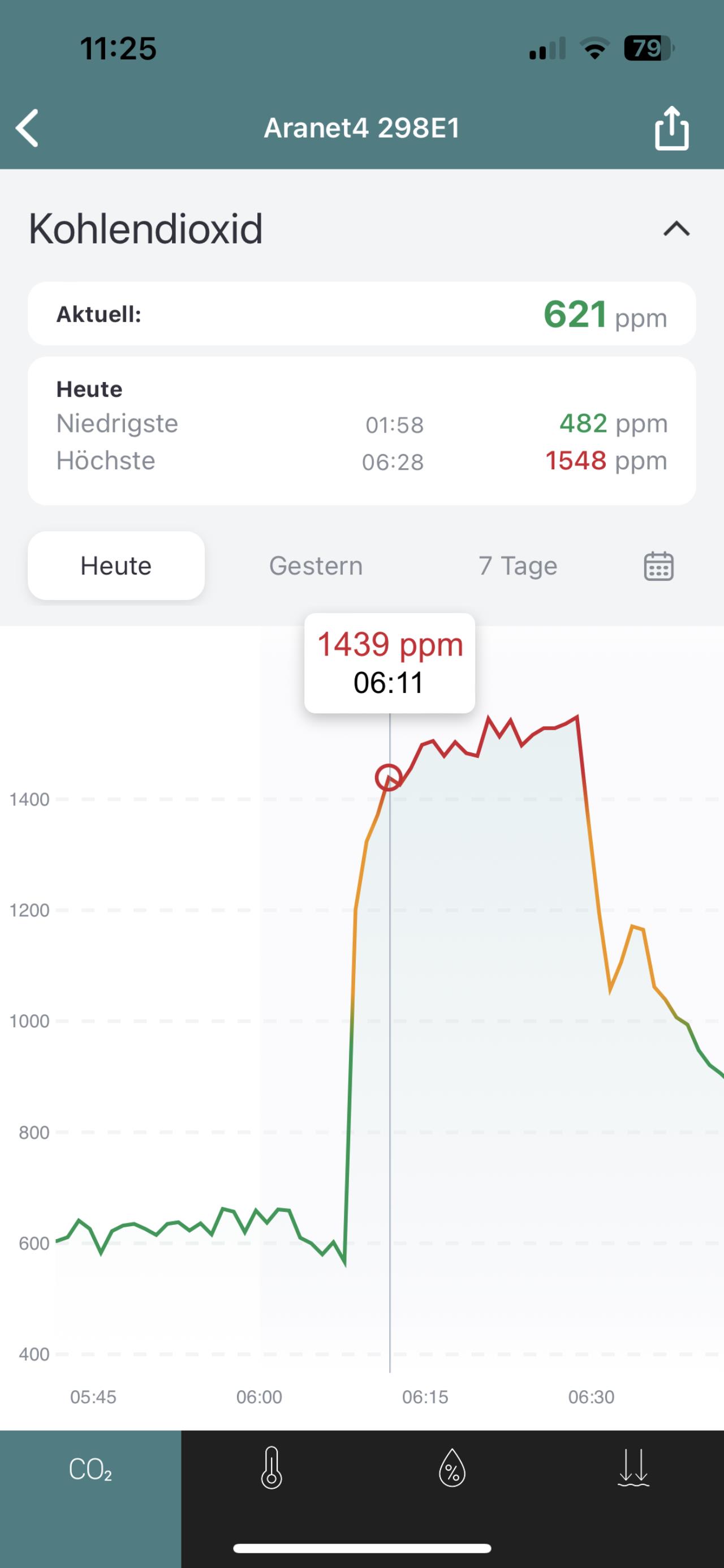 So ein schneller Anstieg ist eigentlich nur mit einer Umpositionierung des Geräts erklärbar. Hast du da den Sensor von deinem gut belüfteten Schlafzimmer in das wenig belüftete Schlafzimmer deiner Tochter gestellt?