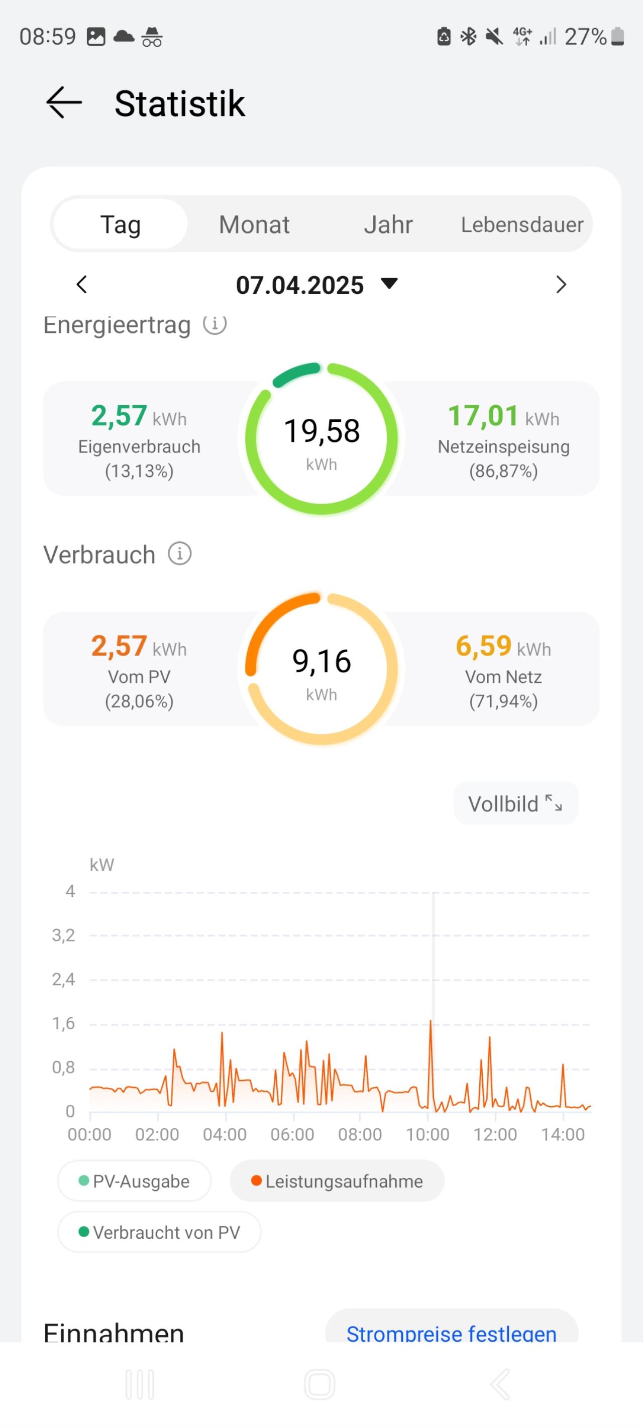 Hallo Zusammen, Ich glaube ich habe die Antwort gefunden. Nachdem die WP WP [Wärmepumpe] diesen Verbrauch nicht jeden Tag hat, habe ich nochmal in die Einstellungen reingesehen. Dabei ist mir aufgefallen, dass der Frostschutz der WP WP [Wärmepumpe] aktiv ist: Dies würde sich auch mit den Tagen decken, an denen es in der Nacht unter 3° gehabt hat. |
