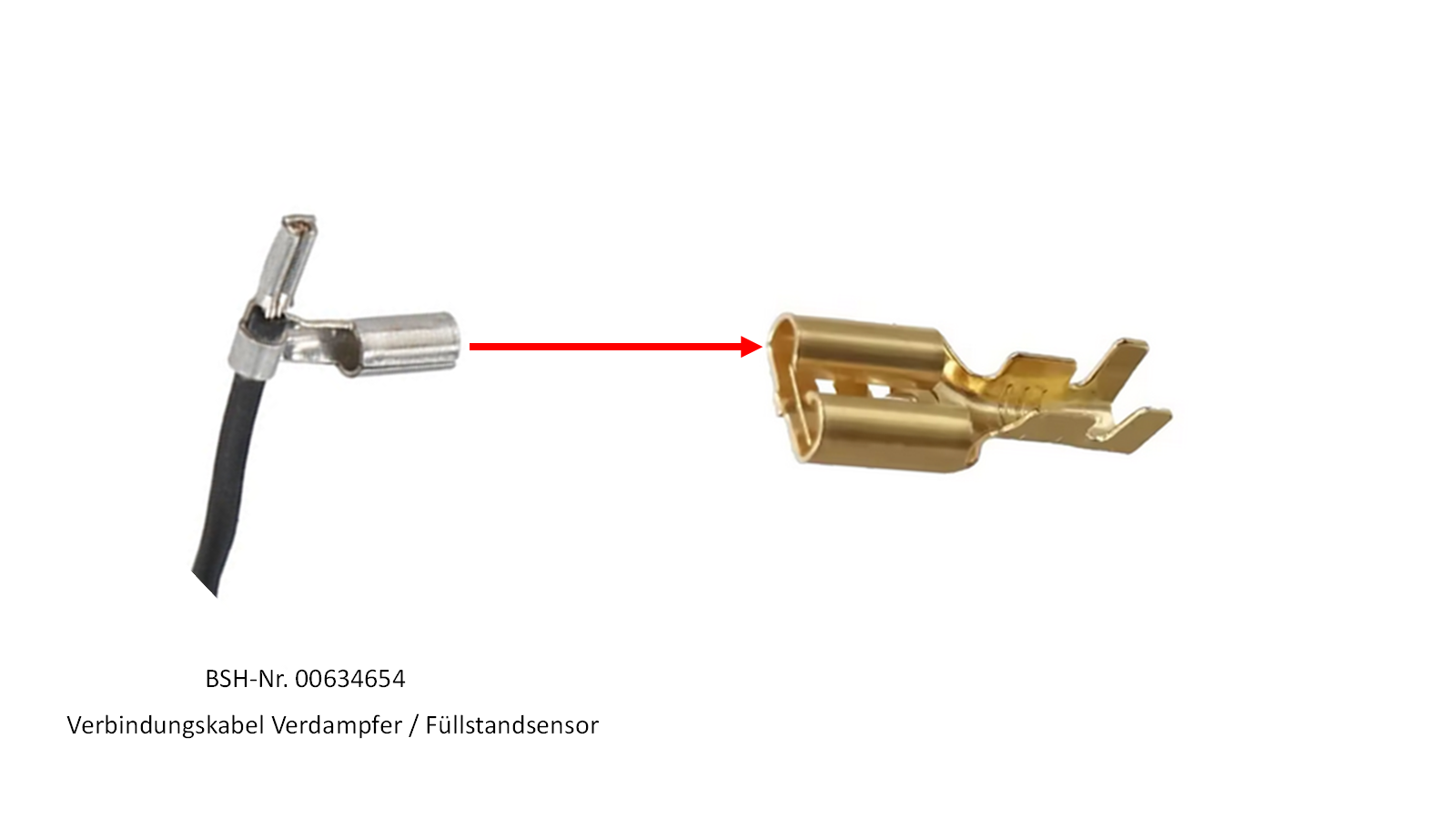 So einen Winkel-Crimpstecker wird man nicht bekommen. Entweder du kaufst das Kabel um ca. 10-12€ neu, oder passt einen Steckkabelschuh an. Strom fließt da keiner, da es sich um einen Füllstandssensor handelt.