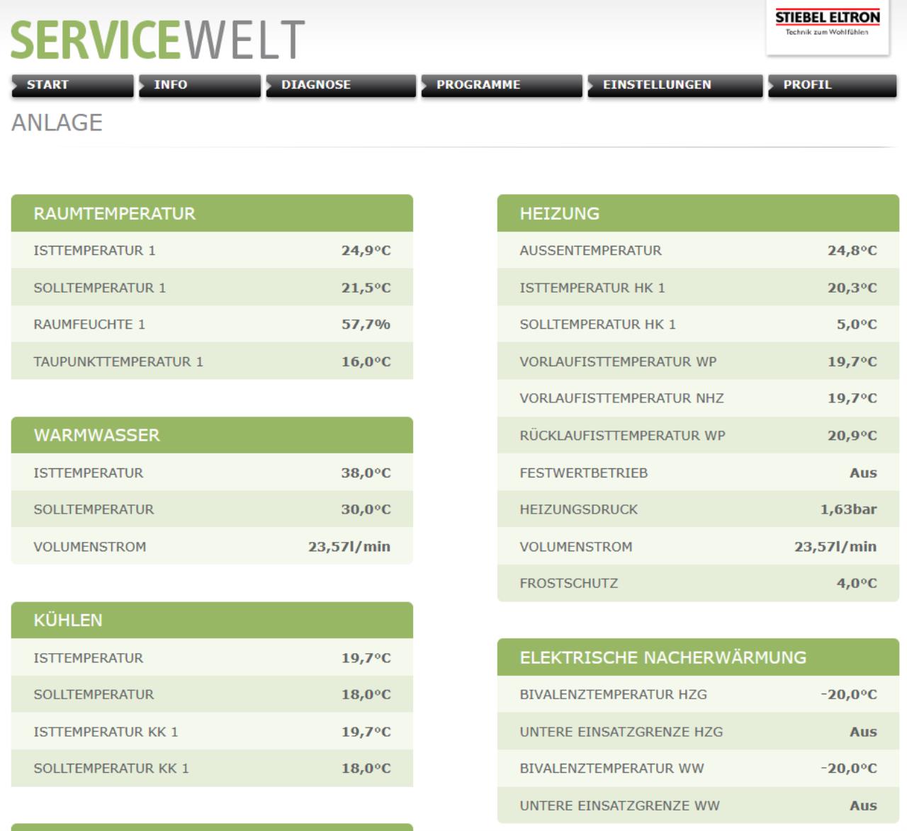 Hallo Zusammen Bei meiner neuen WP WP [Wärmepumpe] funktioniert der Zugang zur "grünen" Servicewelt über die IP problemlos. Auch kann ich die mystiebel App nutzen. Im ISG sehe ich keine Fehlermeldung und der Portalschlüssel ist vorhanden. Nun hat mit dre Installateur gesagt dass die Oberfläche www.servicewelt.stiebel-eltorn.de eine bessere Ansicht bietet als die lokale Servicewelt. Dort kann ich mich aber nicht einloggen, habe es mit dem Login der mystiebel App versucht. Wenn ich auf Anmeldedaten zurücksetzen gehe kann ich MAC Adresse und den Account überprüfen - da meldet es dass kein eVerbindung besteht. Weiss jemand wie ich das in Gang kriege? Wie kann ich mich mit dieser Online Servicewelt verbinden? Grüsse aus der Schweiz |
