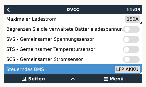 Ich habe einen Fronius am AC-In und einen MPPT MPPT [Maximum Power Point Tracker] RS. Habe DC und AC Überschusseinspeisung aktiv. "Früher" war es so, dass der PV-Strom vom Fronius die Batterie vollständig aufgeladen hat, erst dann ist eingespeist worden. Danach ist etwas von mir oder vom Elektriker (Multiplus Firmware Update) geändert worden und jetzt wird höchstens bis der MPPT MPPT [Maximum Power Point Tracker] ca. 3000W liefert Fronius PV-Strom von den Multiplussen in DC umgewandelt zum Batterieladen. Siehe Screenshots vom VRM von ca. 9-10 Uhr heute früh: 8:59, 771W Fronius-Leistung wird für die Batterie verwendet 09:11, nur mehr 483W Fronius-Leistung wird für die Batterie verwendet weil der MPPT MPPT [Maximum Power Point Tracker] fast 2000W liefert 09:20, es scheint vielleicht ein ca. 2500W limit für die Batterieladung zu geben, darüber wird anscheinen keine Fronius-PV Leistung für die Batterie verwendet 09:58, mehr als 3000W vom MPPT MPPT [Maximum Power Point Tracker], wird zur Gänze in die Batterie geladen, Fronius Leistung wird fürs Haus und ansonsten zur Gänze ins Netz eingespeist, obwohl die Battrie erst zu 65% voll ist. Jetzt steht hier https://www.victronenergy.com/media/pg/Energy_Storage_System/de/configuration.html "PV-Strom von einem netzgekoppelten Wechselrichter, der entweder am AC-Ausgang parallel geschaltet ist, wird zum Laden der Batterie verwendet. Ladestrom und andere Ladeparameter werden auf der Registerkarte Ladegerät in VEConfigure3 konfiguriert." Wo wäre das im VECOnfigure3? hier ist, was ich gerade ausgelesen habe: Charge Current ist es definitiv nicht. Vielleicht sind die Spennungen für die Ladekurve zu hoch? Mein Akku ist ein Pytes und bei ca. 56.2V eigentlich voll. Ich weiß nicht ob relevant, aber hier ist die Zusammenfassung vom ESS Assistenten (bekomme hier die Meldung dass der Assistent nicht die letzte Version ist): Gestern habe ich 14.8 kWh eingespeist, das hätte noch in den Akku gepasst 😭 |