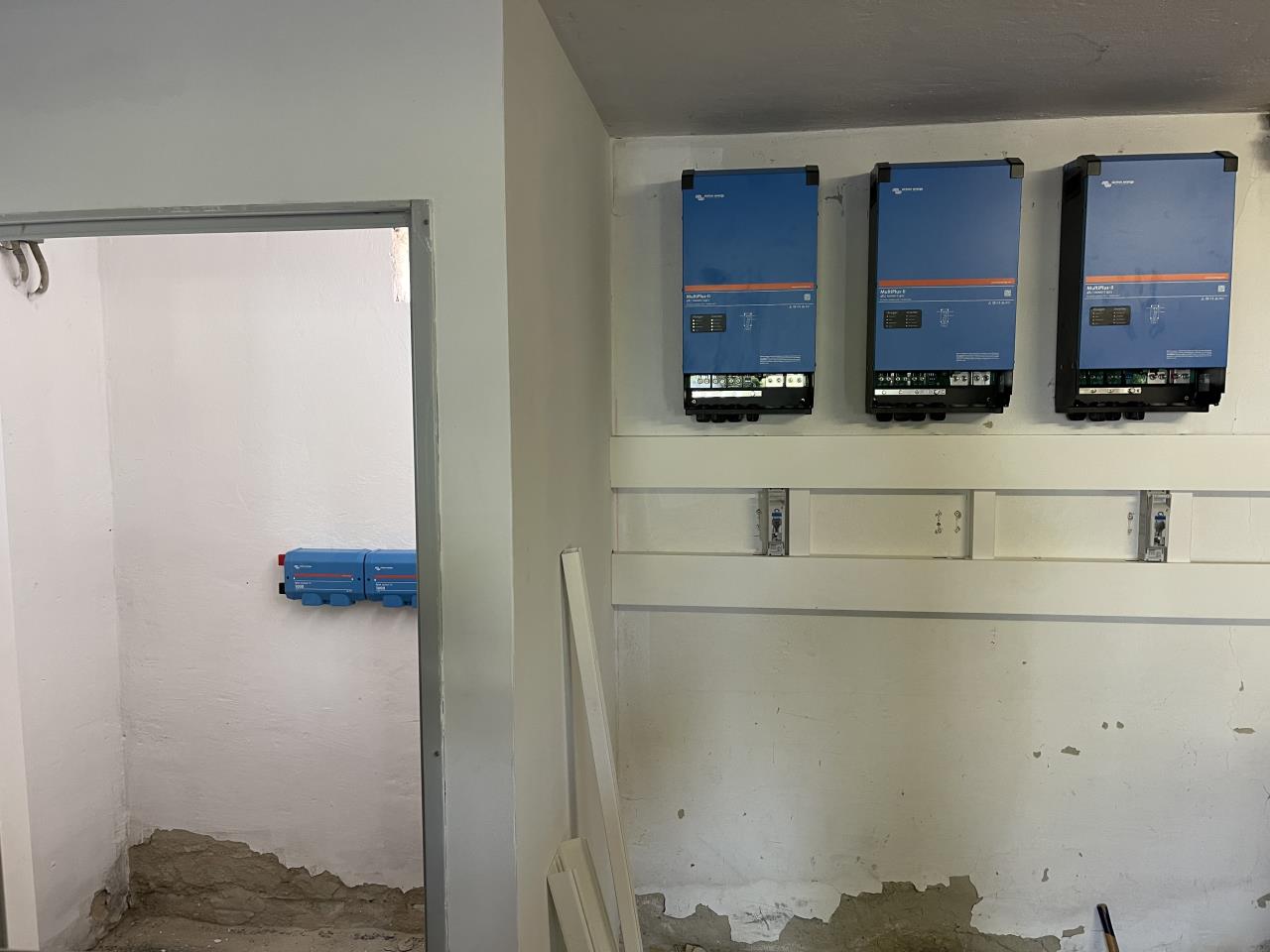 Seit Mitte dieser Woche haben wir jetzt auch so blaue Schachteln im Keller. :) Ausgepackt an der Wand schauts zur Zeit so aus: Als Akku haben wir 10x Pytes V5° und der Wechselrichter ist ein Fronius Verto 30. Diesen hänge ich mit der alten SE9K Anlage auf AC Out, die 1:1 Regel halten wir ein, weil die Dachflächen nach Ost/West/Süd aufgeteilt ist und niemals 30kW vom Dach kommen. Wie am Bild zu erkennen, Sichern wir jeden Multiplus 10k mit 2 NH Trenner 160A ab. Soll auch jeder Akku mit einer eigenen NH00 160A abgesichert werden, oder reichen dort die Adlersicherungen im Lynx? Die Megafuse sind ja nur für Bleiakkus verwendbar. https://www.energiesparhaus.at/forum-der-victron-sammelthread-alles-zu-den-blauen-kisten/66548_103#771221 @uzi10 und @Fani Weitere Fotos folgen, wenn die Anlage steht. 😁 |