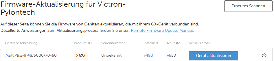 Das Gerät ist ein Multiplus II 48/5000 GX. Der GX ist schon auf neuestem Stand.