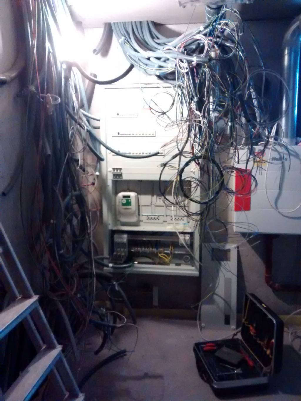 In OÖ darf man mit durchgehenden Schutzschlauch auch von unten in den Verteiler - muss man halt erledigen, bevor verplombt wird. Wobei ich einen eigenen 2ten Schaltschrank habe, wo sich die Kabel Stauen. So sah das bis vor kurzem noch bei mir aus (inzwischen haben wir fast alle in den Kästen - ziehen ja auch bald ein) Links hängt jetzt noch ein Schaltschrank. Netzwerk- und SAT-Kabel kommen in meinem Büro zusammen. Mfg, PrS |