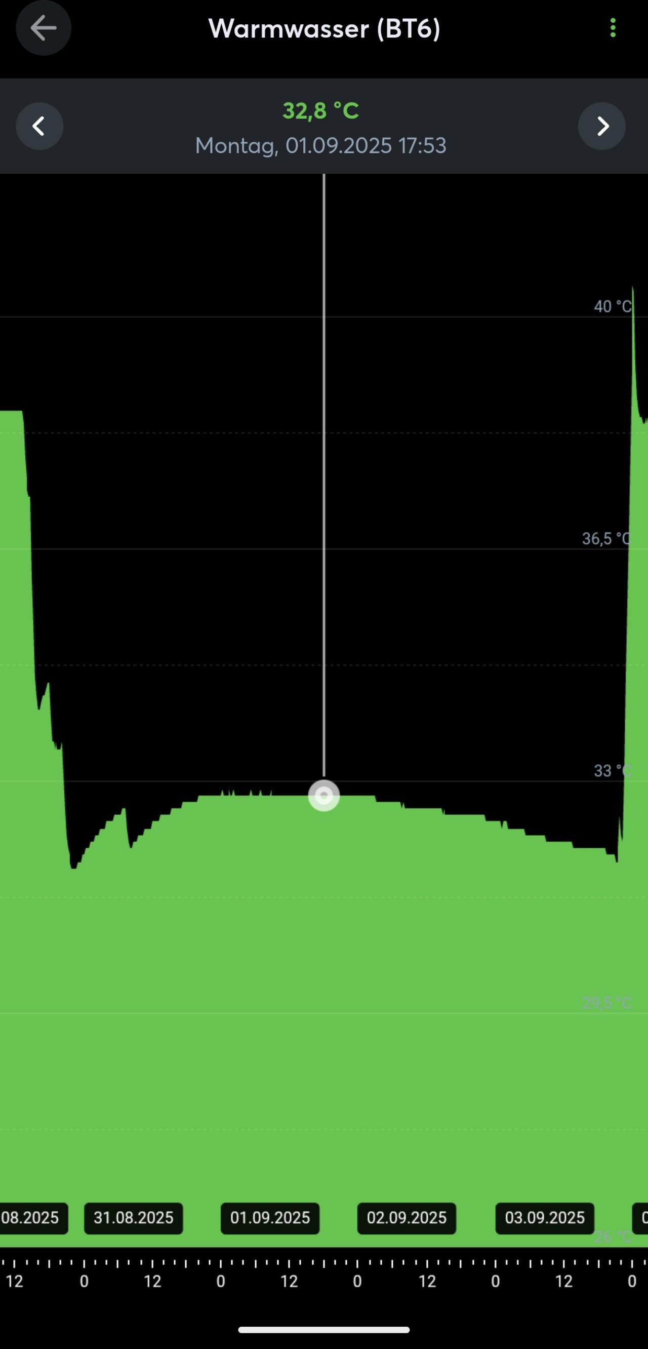 (Jaja, ich weiß schon, dass das Schichtungsvorgänge sind. Und die fast 40°C Stillstandskurve hatte ich vor zwei Jahren, aber damals leider noch keine Loxone Statistik aktiv. Wir sollten wohl öfter Urlaub fahren. 😭😉)