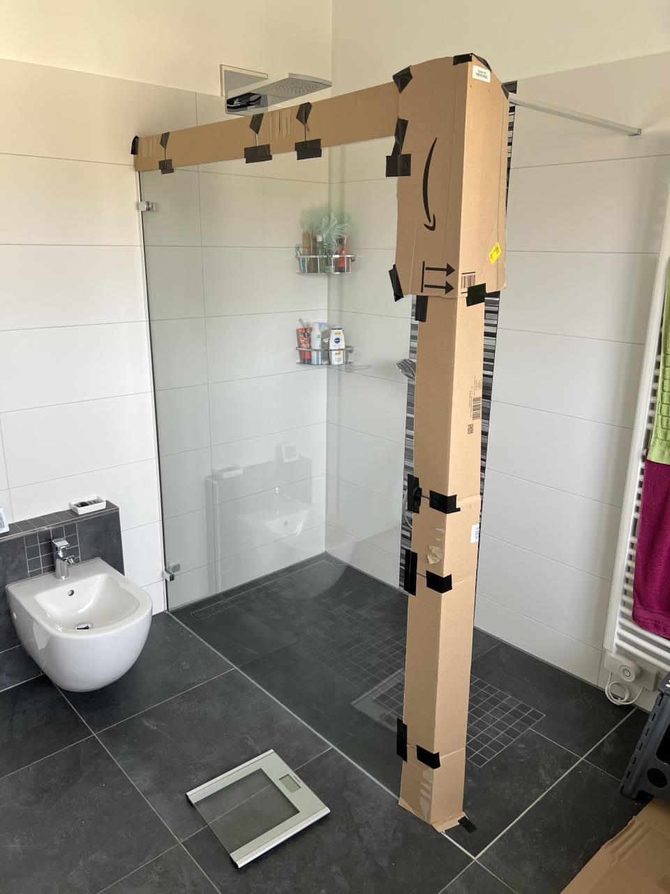 Ich habe die Glaswand mit einer Glas-Politur („Sonax Profiline Glass Polish“) und einem Polierschleifer plus Filz- und Schaumgummi-Pads ca. 2 Stunden bearbeitet. Damit das Zeug nicht überall hinspritzt, habe ich vorher aus Kartonagen rechtwinkelige Streifen auf die beiden offenen Kanten geklebt. Es war eine ziemlich anstrengende Arbeit, bei der ich den Großteil der Politur-Flasche aufgebraucht habe. Die gute Nachricht: Die milchigen, tröpfchenförmigen Flecken konnte ich zu ca. 90% entfernen. Die Glasoberfläche ist sehr viel glatter, was man beim Abspülen mit Wasser sofort deutlich merkt. Zusätzlich habe ich auf das Glas zum Schluss noch eine Versiegelung („Abacus Fleet Magic“ aufgebracht, die ebenfalls sehr gut wirkt - zumindest für ein paar Wochen. Die schlechte Nachricht: Die milchig-weiße Farbe der Flecken ist zwar weg, das „Mikro-Leoparden-Muster“ der tröpfchenförmigen Flecken ist aber als eine Art klares Relief im Glas erkennbar. Wie das möglich ist, ist mir unerklärlich, da das Muster nicht ertastbar ist. Aber damit kann ich leben. Als Polierschleifer habe ich von Einhell CE-CP 18/180 verwendet: https://www.einhell.at/p/2093320-ce-cp-18-180-li-e-solo/ Die oben bereits genannte Glas-Politur: https://www.amazon.de/dp/B002NEFRWW?ref=ppx_yo2ov_dt_b_fed_asin_title/?tag=showlowestprice-21 Folgende Pads habe ich verwendet: Filzscheiben von Sonax: https://www.amazon.de/dp/B002MZZNXU?ref=ppx_yo2ov_dt_b_fed_asin_title&th=1/?tag=showlowestprice-21 Die härteste (= grüne) Schaumgummi-Scheibe aus diesem Set: https://www.amazon.de/dp/B0B78GGDTR?ref=ppx_yo2ov_dt_b_fed_asin_title&th=1/?tag=showlowestprice-21 Die rauheste („gestreifte“) Filz-Scheibe aus diesem Set - die aber eher schlechter als die anderen beiden Scheiben funktioniert hat: https://www.amazon.de/dp/B09FYT2HSH?ref=ppx_yo2ov_dt_b_fed_asin_title&th=1/?tag=showlowestprice-21 Ich hätte mir noch etwas aggressivere Scheiben oder ein Mittel mit etwas aggressiveren Schleifkörpern gewünscht. An Glas-Polituren aus dem Objektbereich bin ich leider nicht heran gekommen. Dort wird in Sets oft auch ein spezielles, rotes „Schleif-Pad“ angeboten. Auf der Suche nach einem etwas aggressiveren, scheuernden Mittel habe ich ein bisschen was aus dem Haushalt durchprobiert - aber leider erfolglos. Hier noch ein paar Bilder: Einen Nachsatz möchte ich auch noch zu einem hier erwähnten Nachbar-Forum anbringen, in dem meines Wissens auch einige ESH ESH [Energiesparhaus]-User aktiv sind: Ich habe in den letzten 1,5 Wochen sehr schlechte Erfahrungen mit dem dortigen Forenbetreiber gemacht. Zuerst wurde mein Account grundlos und ohne jede Erklärung gesperrt. Es sind dort keine Moderatoren oder Administratoren erreichbar. Erst über das Impressum und die Forenregeln konnte ich schließlich zwei Emailadressen ausfindig machen und über diese nachgefragt - keine Reaktion. Ich habe mich schließlich mit einem neuen Account registriert und einen Thread zu der Angelegenheit aufgemacht, dann hat sich doch endlich jemand bei mir gemeldet. Es hat sich herausgestellt, dass mein Account ungerechtfertigt aufgrund eines technischen Fehlers gesperrt worden ist. Als ich dann meinen Beitrag im dortigen Thread zum Thema Silikat-Ablagerungen gepostet hätte, wurde ich sofort wieder gesperrt, weil mir nicht bekannt war, dass ich keine Links zu den verwendeten Produkten angeben darf. Ich bin zuerst von einem Fehler meines Browsers ausgegangen und habe mehrmals hintereinander versucht meinen Beitrag zu posten - das wurde mir als wiederholter Bruch der Forenregeln ausgelegt. Erst als ich auf die Time-Codes verwiesen habe, wurde das zurückgenommen. Es wurde mir aber sogar untersagt, die verwendeten Produkte überhaupt genau zu benennen oder in wie fern ich mit deren Wirkung zufrieden bin oder nicht. Das ist einfach nur lächerlich und führt jegliche Diskussion in einem Forum ad absurdum, es entspricht auch nicht der Realität in diesem Forum. Ein kurzer Beitrag der Erklärung, dass ich mich in diesem Forum nicht mehr viel beteiligen werde und was dem vorangegangen ist, wurde sofort gelöscht und mein Account erneut gesperrt. Ich finde das Verhalten des Betreibers einfach nur grotesk. Es wäre besser, man würde die Zeit und Energie in die Verbesserung der fehlerhaften Forensoftware (Stichwort Handy-Verifizierung, ausbleibende Bestätigungs-Emails etc.) und mangelhafte Kommunikation investieren. Wer möchte, kann aus meinen Schilderungen gerne seine eigenen Schlüsse ziehen. Ich bin dort jedenfalls nach - ca. 8 Jahren Mitgliedschaft und ein paar Hundert Beiträgen ohne jeden Regelbruch - raus. |