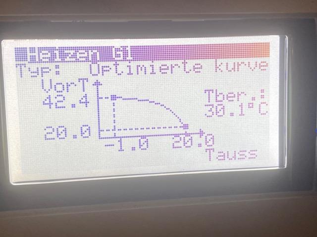 Hallo, ich hoffe Du konntest es schon lösen. Mir ist aufgefallen das bei Deiner Heizkurvevder untere Wert bei minus 1°C liegt. Da sind es bei mir minus 10°C. Siehe Bild. Gruß Franz |