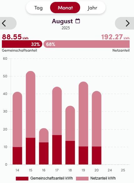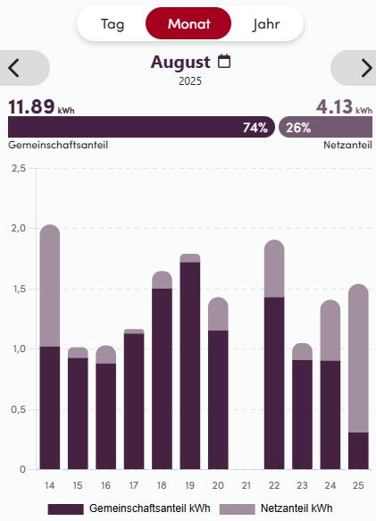 Schaut doch gut aus. Nach 2 Jahren BEG Reise bin ich derzeit auf BEG Version 2.0 ![]() Ich tu mir in meinem Setup leichter als du, da ich mehrere PV Anlagen habe und damit die Einspeiseprofile und TN Faktoren pro Anlage besser steuern kann. Beispiel: Wenn ein gemischter Tag ist, lass ich eine PV Anlage ohne Batterie die Tagesversorgung der BEG übernehmen und die anderen Anlagen mit Batterie schauen als Prio #1, daß sie am Abend auf jeden Fall die Batterien voll bekommen und damit die Abend/Nachtversorgung übernehmen können. Derzeit ist alles noch manuell nach Pi * Daumen, aber irgendwann, wenn ich genügend Zeit habe, möchte ich das dezentrale Gesamtsystem automatisieren. In der Zwischenzeit bin ich mit dem aktuellen Ergebnis (auch im Sommer) recht zufrieden. Die letzten 4 Tage. Von den 2300 eingespeisten kWh gingen nur 148 kWh (6%) als Überschuss an die EVU's/OeMAG. ![]() ![]() |