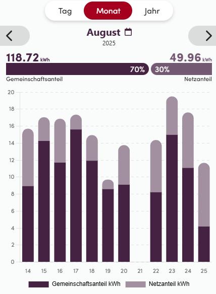 Ja stimmt. Mir wär schon geholfen wenn man die Einspeisung direkt über Modbus steuern kann. Ich kann jetzt zumindest mal die Lade- und Entladeleistung über Modbus steuern. Ich werd mir mal was basteln damit der Speicher möglichst auf <10% geleert wird und falls am nächsten Tag kein schönes Wetter ist die Einspeisung in die BEG komplett gestoppt wird. Mal sehen. Zwei Fragen zum EDA Portal hätte ich noch: Wenn ich jetzt eine 2. EG Gründe (lokale EEG und BEG) muss ich alle Schritte nochmal durch machen (Verein gründen, EbUtilities neuen Account anlegen und die Rolle dementsprechend auswählen, Verträge mit Netzbetreiber schließen) nur im EDA Portal kann ich mit einem Account auch zwei oder mehr EGs verwalten? Richtig? Zumindest würde die Optik des Portals darauf schließen lassen: ![]() Die Übermittlung der Smartmeterdaten scheint recht lückenhaft zu sein. Vom Einspeisezählpunkt wird seit 20.8 nichts mehr übermittelt (im NetzNÖ Smartmeterportal wird aber alles angezeigt) und von den beiden Beziehern fählt ein Tag. Ist das bei euch auch so und muss ich mich einfach nur gedulden? Die ersten paar Tage wurden die Werte eigentllich regelmäßig übermittelt. ![]() ![]() ![]() |